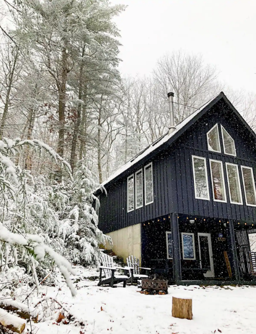Seguimos en el estado de Nueva York, en Estados Unidos, con una cabaña rodeada de nieve y escondida en un bosque cerca del Lago Delaware. Este es considerado un espacio de ensueño pues aquí podrá gozar de días acogedores frente al fuego mientras ve caer la nieve. Su interior cuenta con una lujosa arquitectura y vista hacia el exterior. Una noche le puede costar US$395.