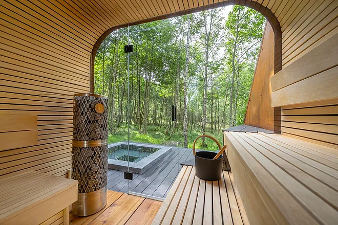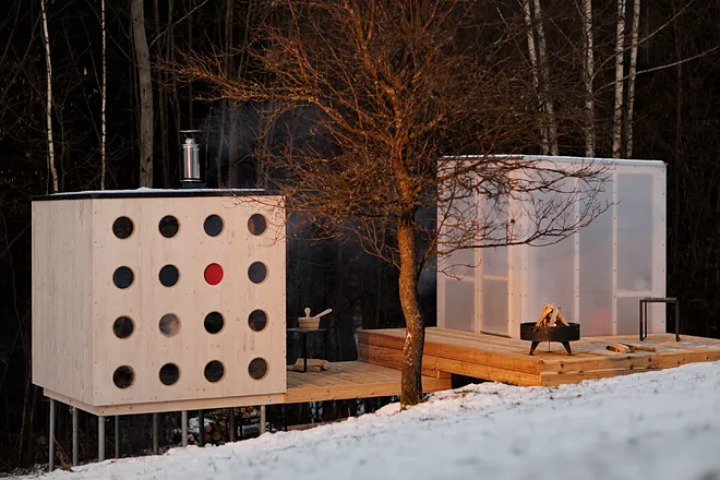 La aproximación de la diseñadora multidiscplinar Adéla Baçová pone el contrapunto frente a modelo más clásicos de sauna.