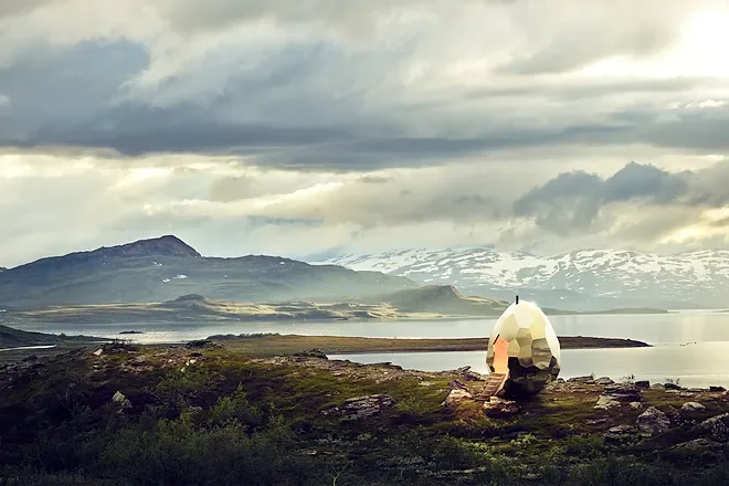 Sauna, escultura y provocación casi a partes iguales. Este huevo dorado instalado en mitad de la nada es cosa de los artistas suecos Mats Bigert y Lars Bergström que la idearon por encargo de la cooperativa de vivienda Riksbyggen y desde entonces ha salido de gira por el mundo.