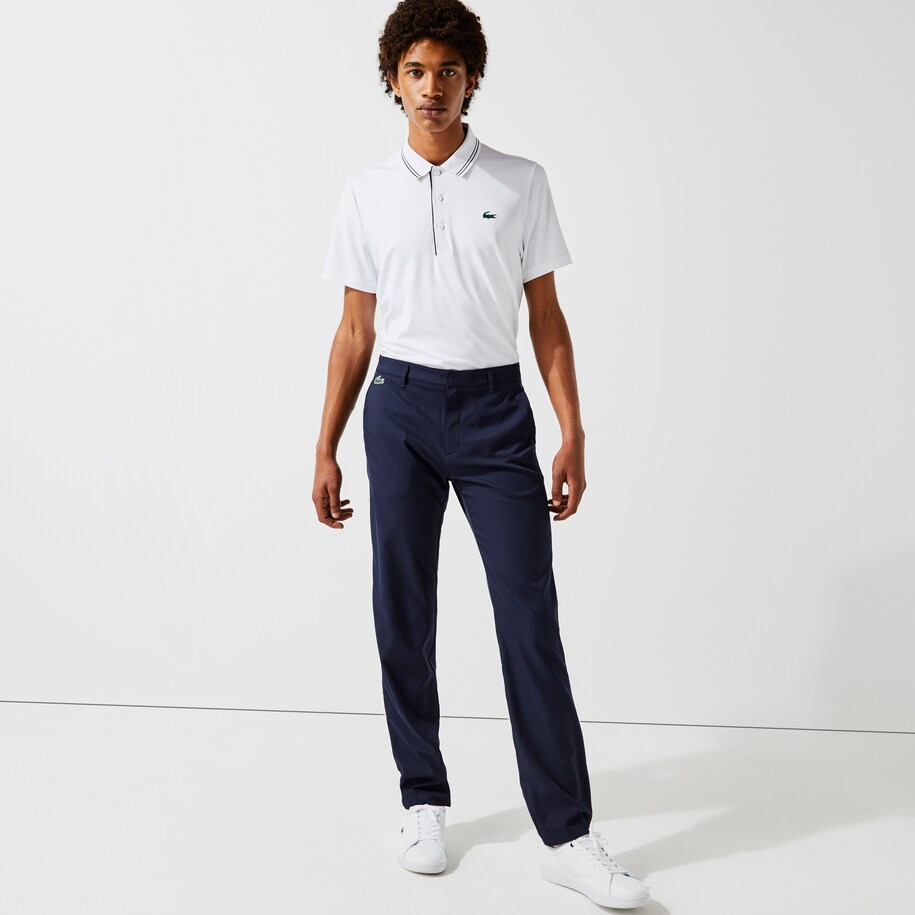 Aunque esta marca tiene u enfoque en el tenis, Lacoste cuenta con varios productos en su línea Sport creados para practicar un Swing con estilo. Un pantalón sastre de golf y un polo de golf con mangas raglán son algunas prendas que puede encontrar y combinar.