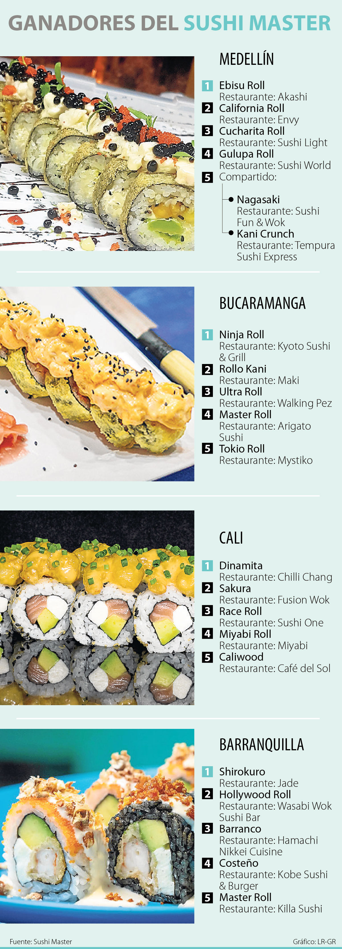 Si se quedó por fuera de los comensales que no pudieron participar en el Sushi Master con esta lista ahora puede hacer el recorrido por los mejores lugares y hacer su propio ranking.