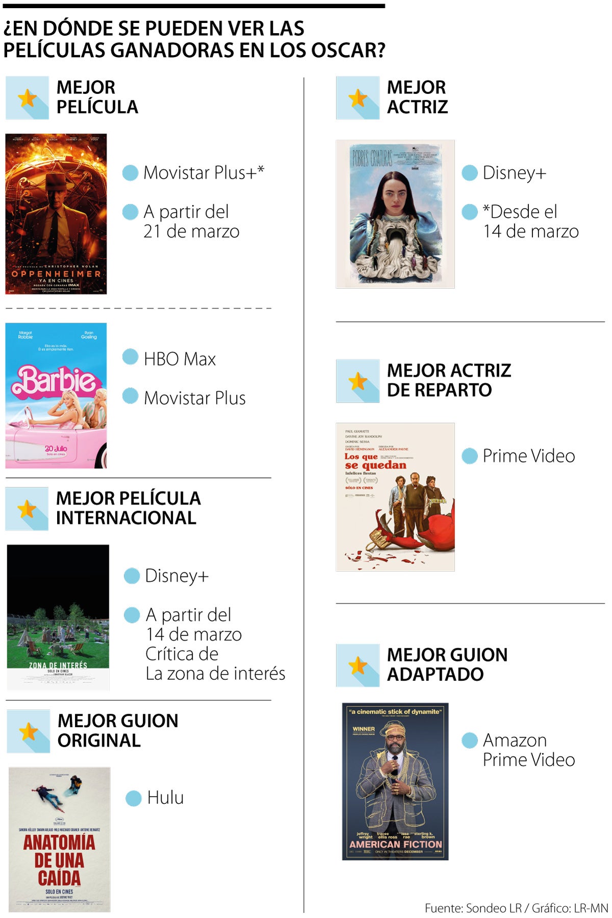 Quien se quedó con el galardón a mejor actriz, fue Emma Stone, de “Pobres criaturas". Esta la puede ver en Disney +. En mejor actriz de reparto figuró 'Los que se quedan', filme que se puede ver en Prime Video.
