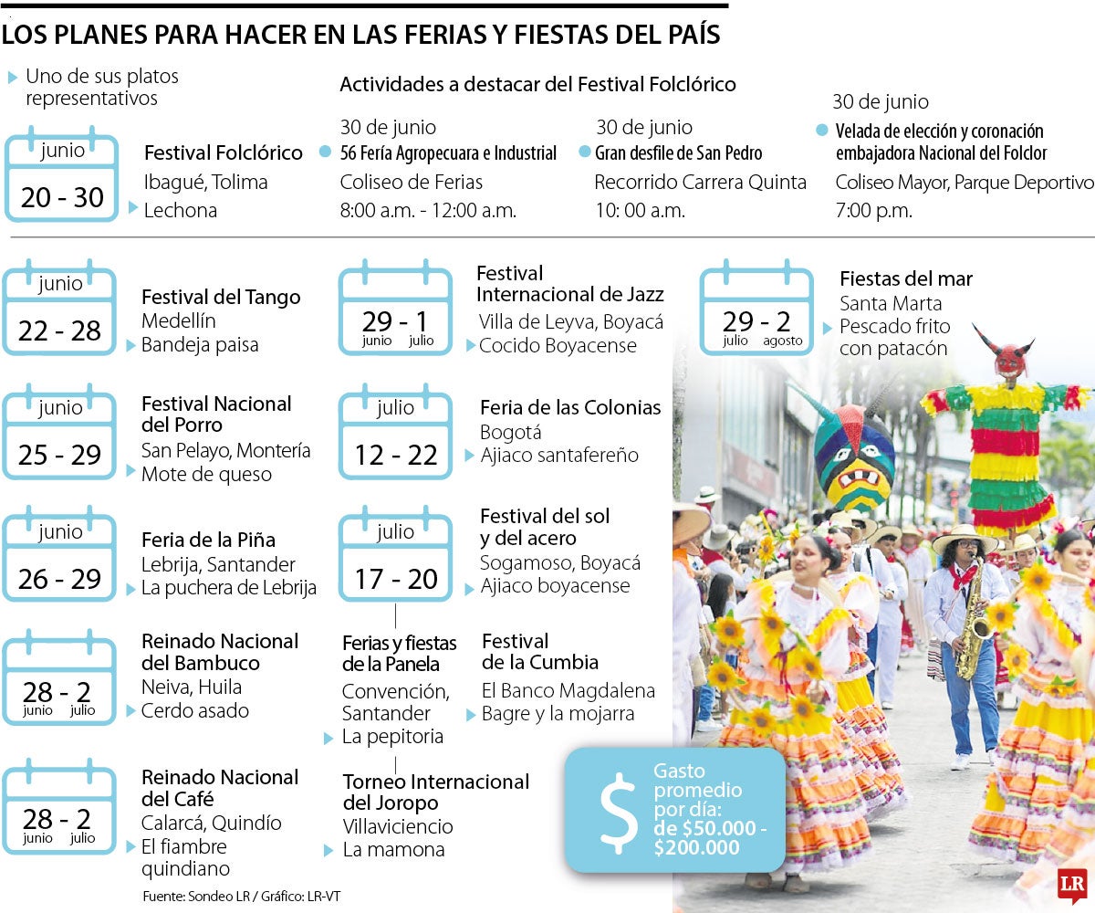 Pero, más allá de las ferias más grandes como la de Medellín o la de Cali, en el país hay más de 10 ferias y fiestas que se celebran en distintos municipios, con un sin fin de actividades culturales, de recreación y diversión para disfrutar. Desde desfiles, alboradas, hasta cabalgatas y grandes conciertos se podrá encontrar en cada una de ellas. No más este puente festivo se celebra el tradicional Juan y San Pedro en el Tolima y en el Huila. Esta festividad es una exaltación a la cultura local, en donde se combinan elementos religiosos y tradiciones autóctonas. Estas festividades tienen lugar a finales de junio y principios de julio.