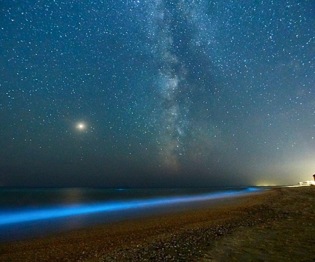 El fenómeno ocurre por la presencia de un alga llamada Noctiluca scintillans, también conocida como 'chispa de mar', que es la responsable de provocar estos destellos lumínicos.