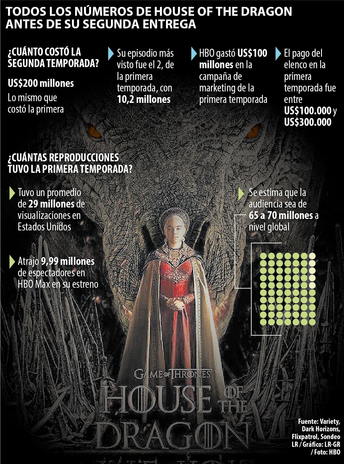 Por otra parte, Bloomberg reveló que HBO anunció la tercera temporada sin aún estrenar la segunda. Lo anterior se puede deber a que “la serie ha marcado hitos en cifras y recaudo, así como lo dejó ver desde su primera temporada. House of the Dragon tuvo más de nueve millones de espectadores”, dijo a LR Alejandro Matallana, guionista de cine y profesor en la Universidad Jorge Tadeo Lozano.