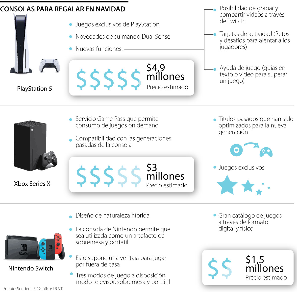 Playstation 5, Xbox Series X y Nintendo Switch lideran el mercado y pueden ser buenas opciones por su amplio catálogo de juegos