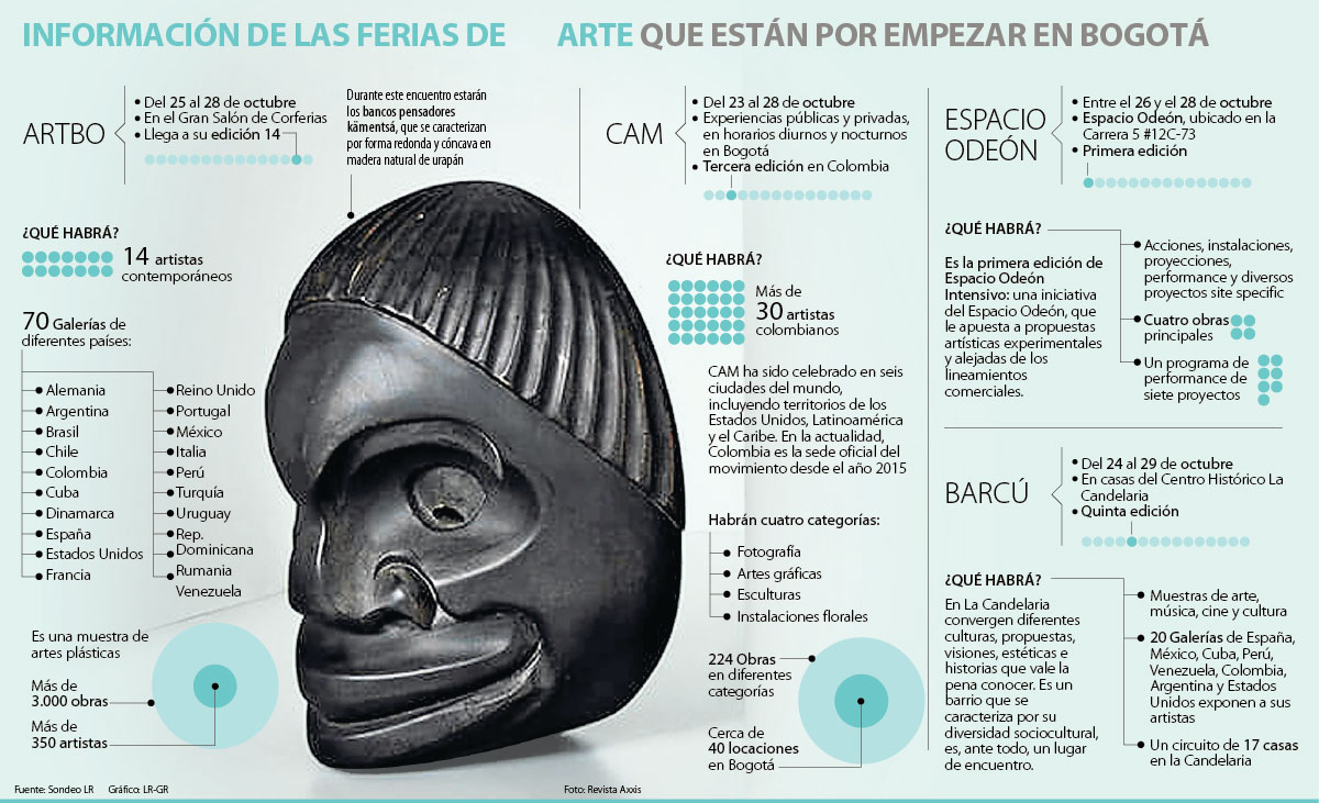 Desde hace un par de años, poco a poco, curadores, escultores, pintores, entre otros; han hecho de octubre el mes del arte en Bogotá. Desde nombres reconocidos en la industria hasta jóvenes que se inician en la escena, conformarán cuatro ferias en diferentes lugares de la ciudad.