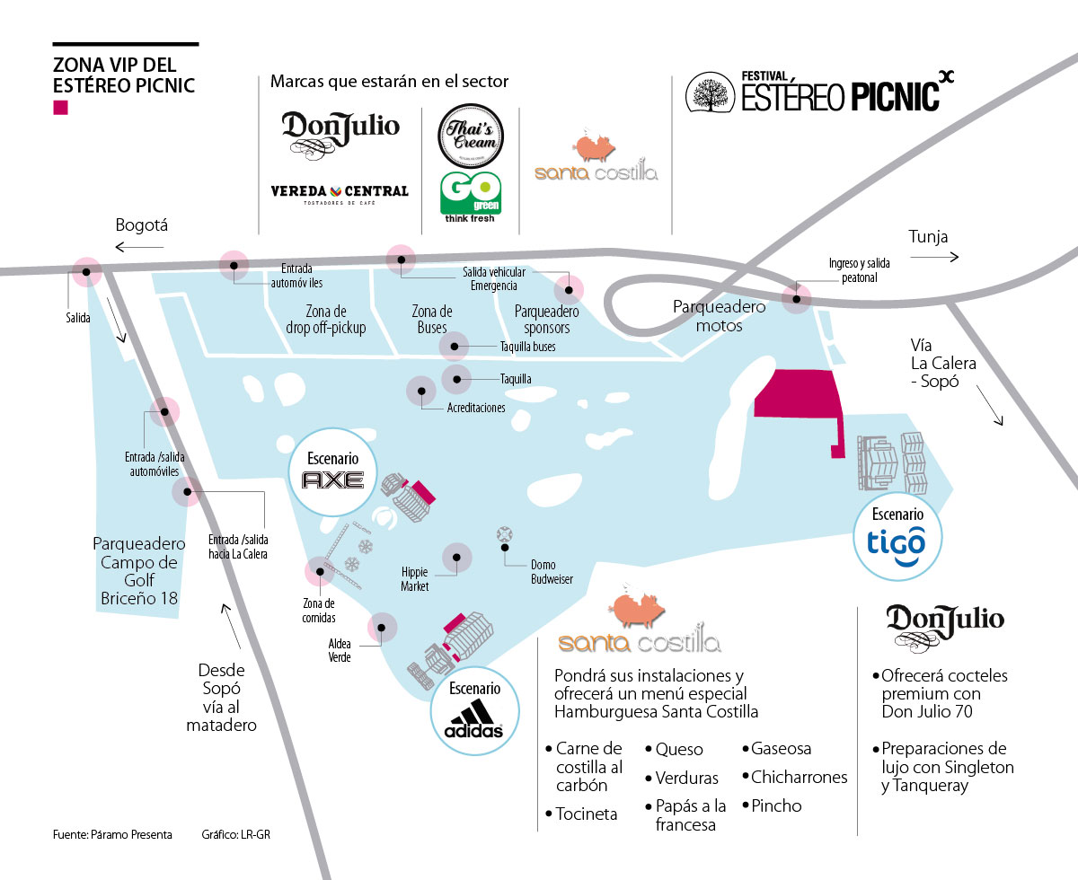El CEO de este último restaurante, William Vinasco, aseguró que se utilizarán las instalaciones del restaurante, que se encuentran en el Campo de Golf de Briceño (donde se realizará el Estéreo Picnic) para ubicar parte de la Zona VIP. Además, se ambientará un parqueadero para que las personas “puedan degustar la hamburguesa especial de Santa Costilla, hecha con carne de costilla al carbón, tocineta, verduras y salsas de la casa, acompañada de papas a la francesa y gaseosa”.
