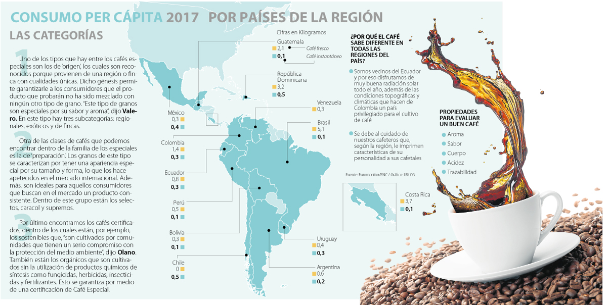 Lo primero que hay que tener en cuenta es el tipo de café que compramos, pues hay de varias clases, por ejemplo están los especiales que se “son aquellos valorados por los consumidores por sus atributos consistentes, verificables y sostenibles, por los cuales están dispuestos a pagar precios superiores que redunden en un mejor ingreso y un mayor bienestar de los productores”, señaló Olano.