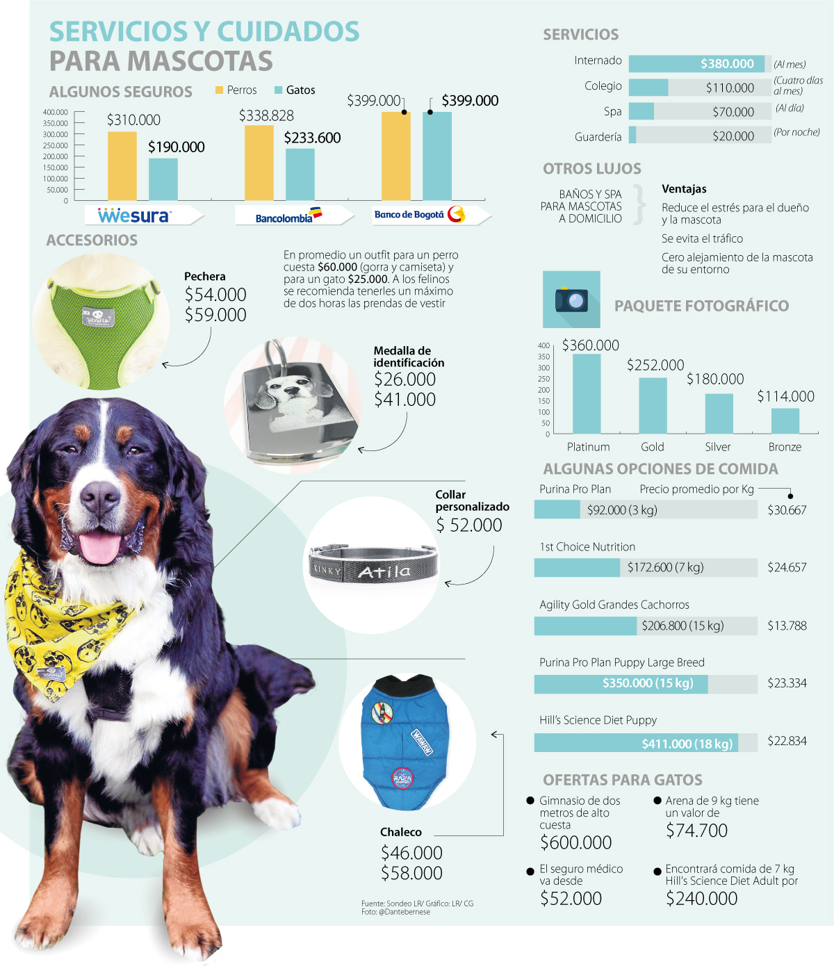 Cada vez hay más familias que tienen o toman la decisión de conseguir un amigo de cuatro patas, ya sea un gato o perro. Es por esto que LR le trae la cuenta de una serie de servicios premium que le permitirán consentir a su mascota todos los días del mes. Entre las ofertas se encuentran: spa, colegio, internado, guardería, seguros, accesorios, sesiones de fotos, alimentación y gimnasio.