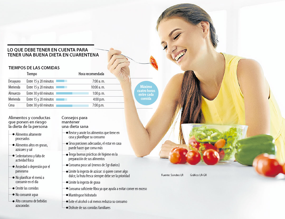 “Revise y anote los alimentos que tiene en casa y planifique su consumo; utilice primero lo que ya está en su despensa, así como los alimentos con una vida útil más corta; con esto, evitará el desperdicio”, aseguró Issac Kuzmar. Además de saber qué tiene, Olga Pinzón recomienda hacer un cronograma diario de lo que se consumirá durante el día, así se podrá ver que tan balanceada está su dieta. Por su parte, Molina resaltó que siempre se deben tener cinco tiempos de comida y estas no se deben reemplazar o suspender por otras bebidas o alimentos distintos a la dieta inicial.