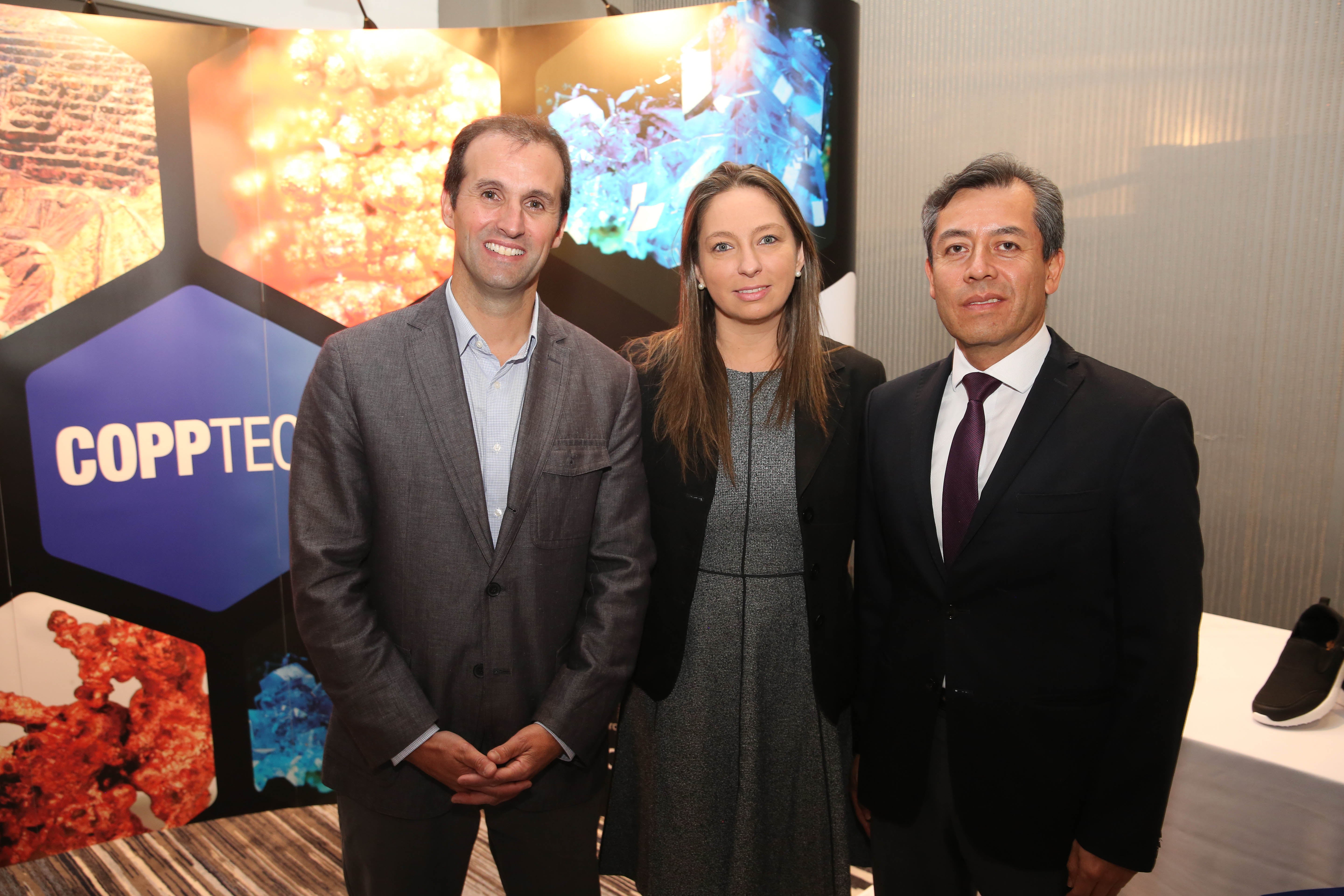 La nueva empresa de soluciones tecnológicas para cobre y zinc realizó su lanzamiento organizado por Manuel José Bauzá, gerente de Copptech; Soledad Lazcano, gerente de proyecto y Carlos Muñoz, subdirector de ProChile.