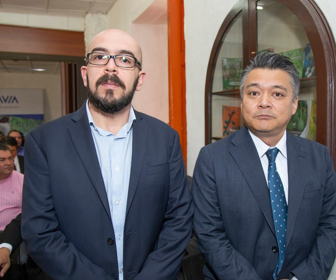 La Corporación de Productores y Exportadores de Aguacate Hass de Colombia (Corpohass) realizó un evento de celebración por el cierre de la negociación de exportación de aguacate Hass a Japón. Al encuentro asistieron empresarios del sector, académicos e investigadores del sector agrícola y funcionarios. En la foto: Jorge Alberto Uribe, vicepresidente de la Junta Directiva de Corpohass; Keiichiro Morishita, embajador de Japón en Colombia; y Ricardo Uribe, miembro de la Junta Directiva de Corpohass.