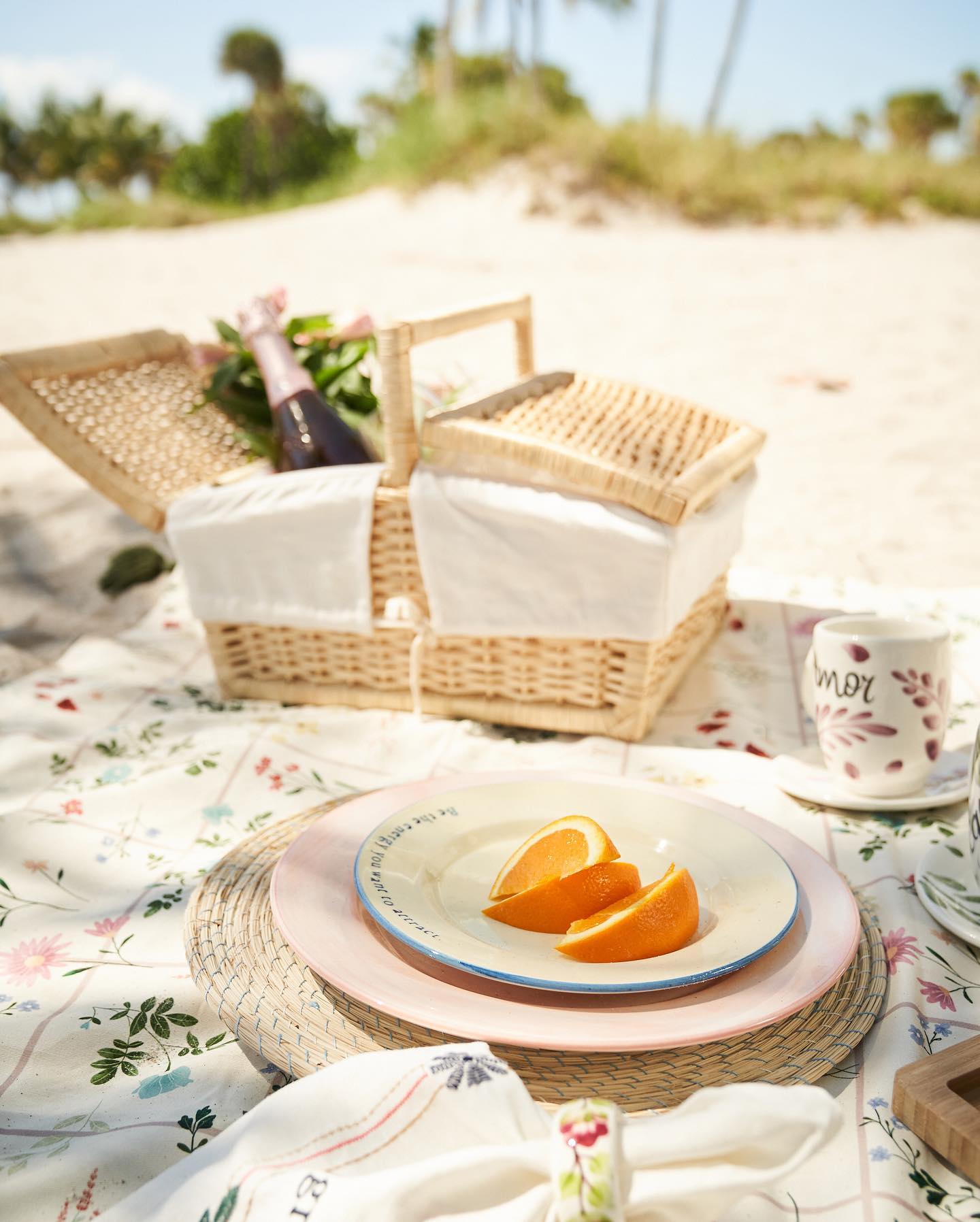Placement Home es una marca colombiana enfocada en lencería para la mesa y decoración. En estas piezas de la colección ‘Alegría’, los caminos de mesa tienen ilustraciones y pueden costar $99.000, la canasta de picnic cuesta $120.000 y el mantel $250.000.