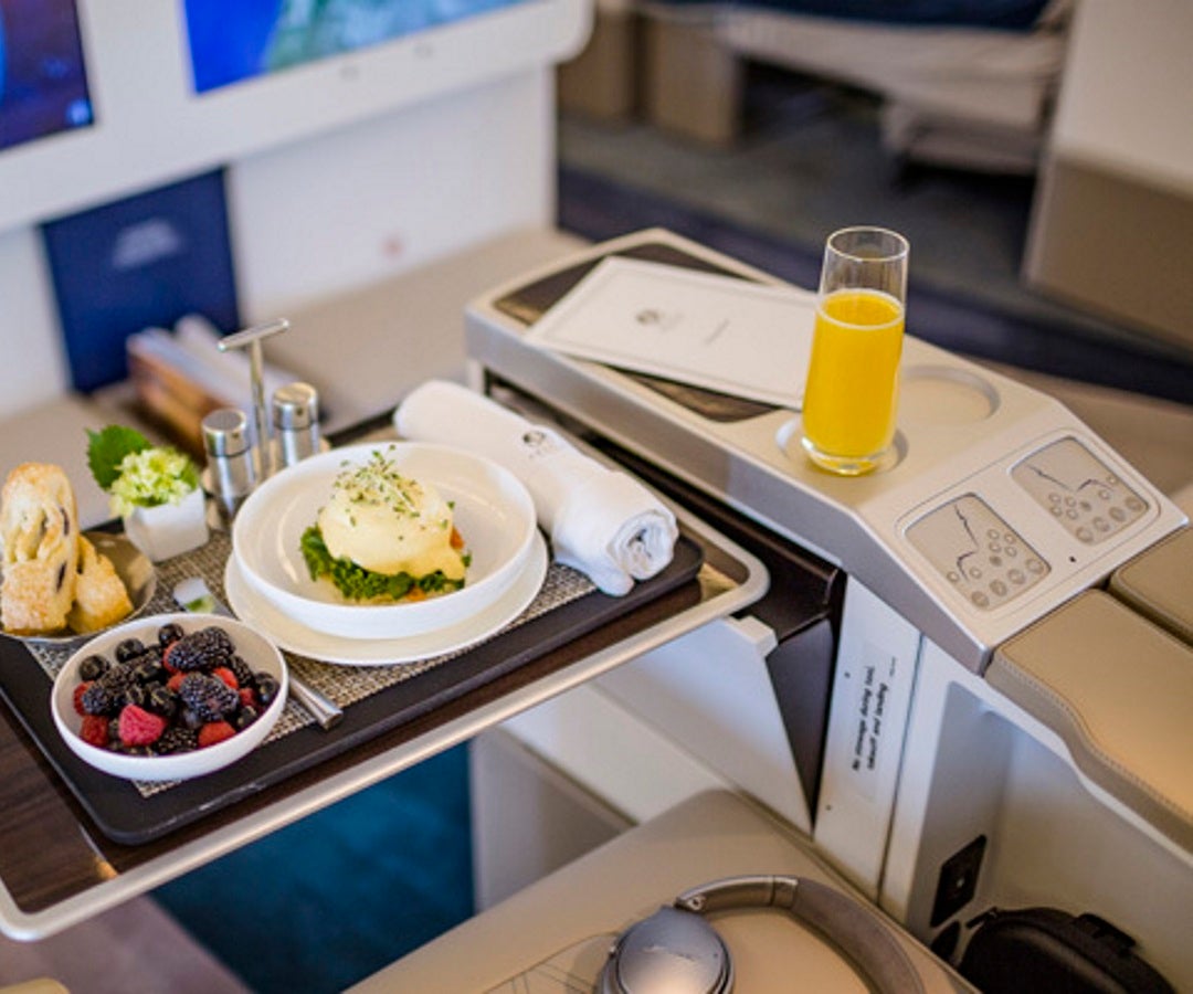 La tripulación cuenta con una docena de mayordomos que hablan entre todos más de 30 lenguas. Los dos pasillos entre las tres filas de acogedores asiento-cama permiten el cruce de dos personas sin rozarse ni hacer piruetas de gimnasia para sortear los obstáculos. Ante el asiento de cada pasajero se abre un infinito mundo de tecnologías, canales de tele y radio, y medios de comunicación; desde llamadas telefónicas y acceso a Wifi hasta una larga lista de películas para ver mientras el avión se mueve a unos 870 kilómetros por hora hasta 19 horas sin necesidad de aterrizar. Se puede alquilar de 1 hasta 28 días seguidos.