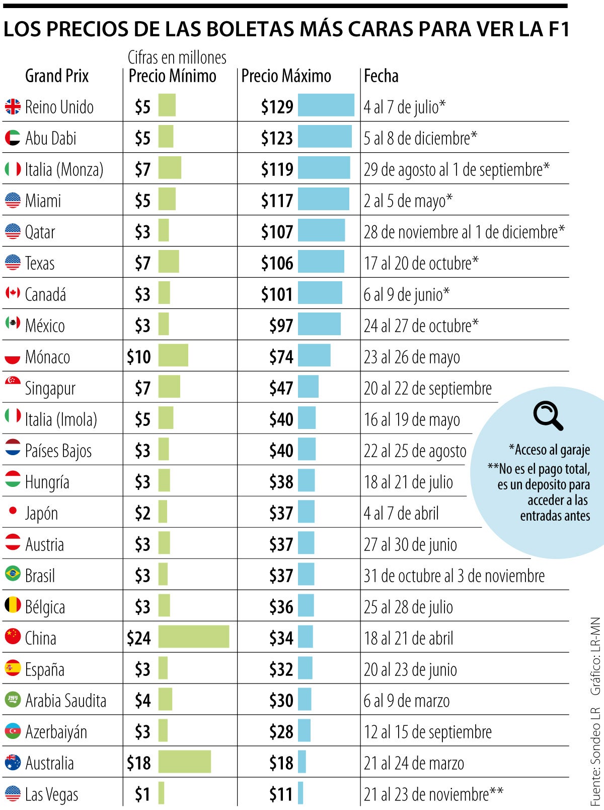 Los precios más económicos y más altos de la Fórmula 1.