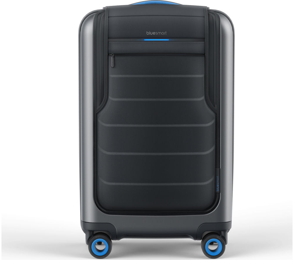 Dice dónde está emitiendo una notificación al celular e informa de su peso a través de sensores con una aplicación. Ideal para los viajeros más tecnológicos. Es resistente a golpes, lleva GPS (tarjeta SIM con internet), batería interior de 10.000 mAh con dos puertos USB capaz de recargar hasta seis veces un celular y cargador. Se abre y cierra la maleta a través de Bluetooth.