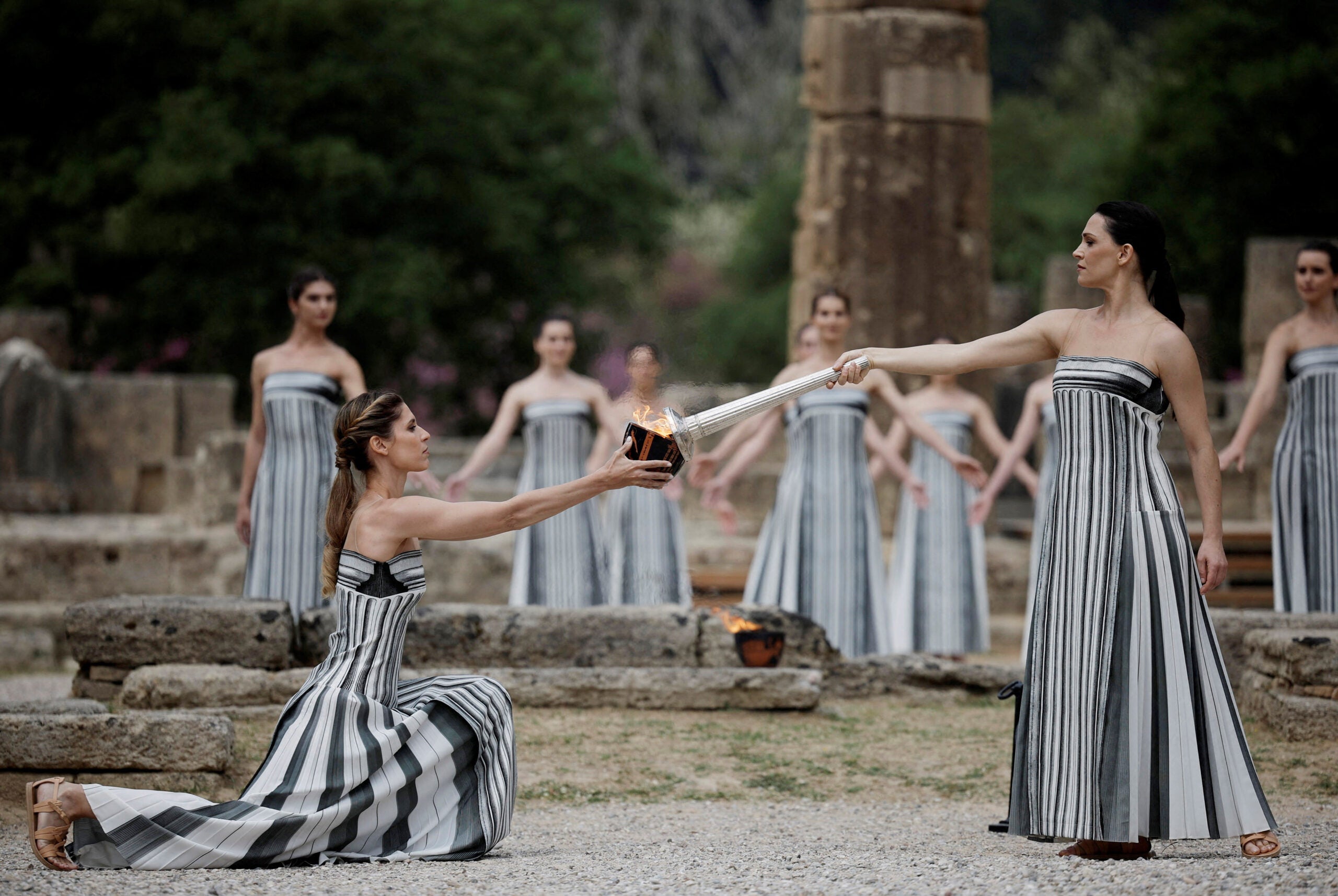 La antorcha olímpica se encendió en la antigua Olimpia y llegará a Francia el 8 de mayo en la ciudad portuaria de Marsella, tras un viaje en el barco de tres mástiles, Belem