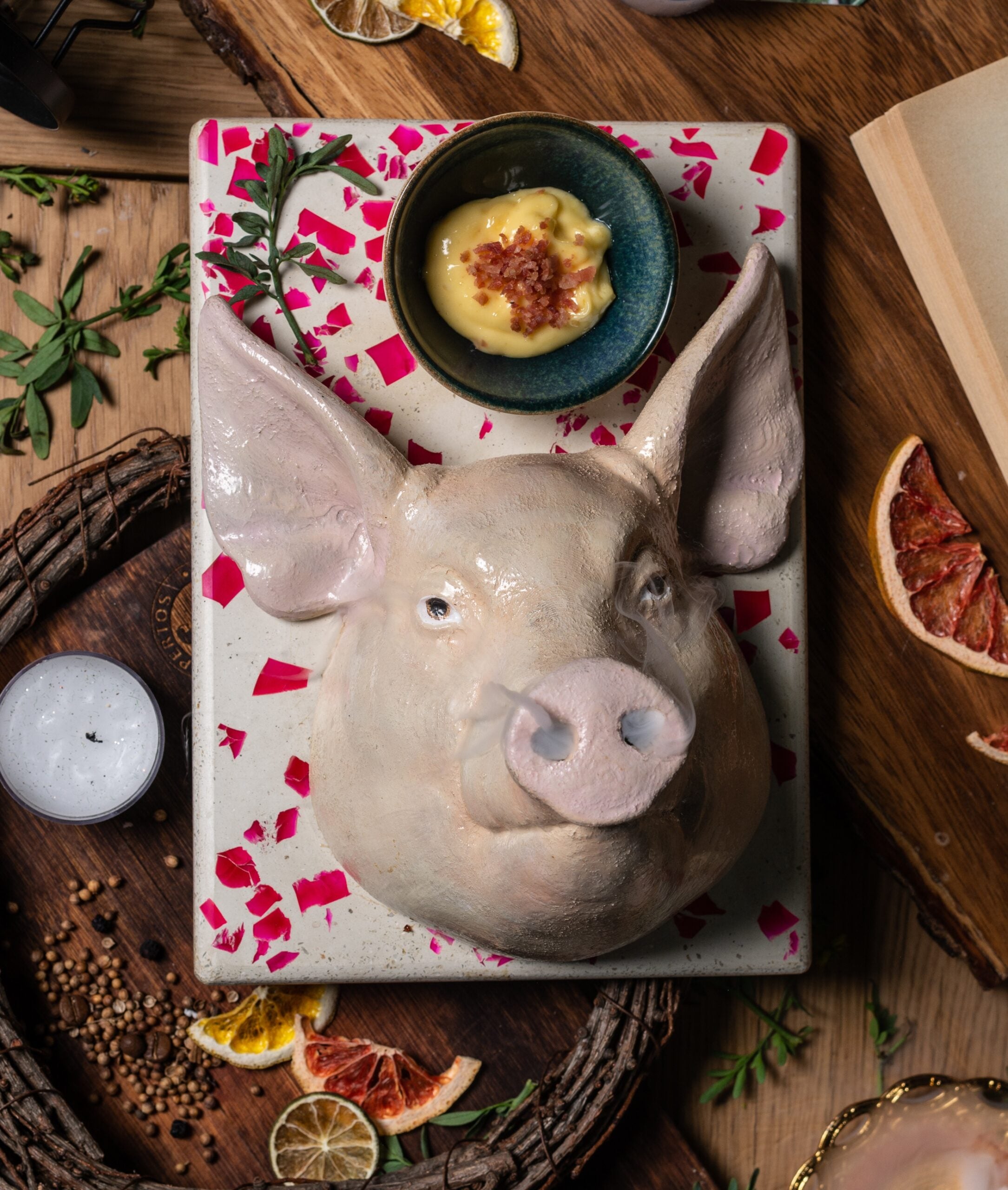Al entrar al lugar se empieza a sentir un ambiente distinto, siendo la marca más bizarra que ofrece platos diferentes y sensoriales, como por ejemplo, el ‘Parando oreja’, que son cuatro dumplings de cerdo, jamón ibérico de campo, gel de café 1920 y crema de queso manchego. Estos vienen dentro de una cabeza de marrano que, a ojos del comensal, parece muy real.