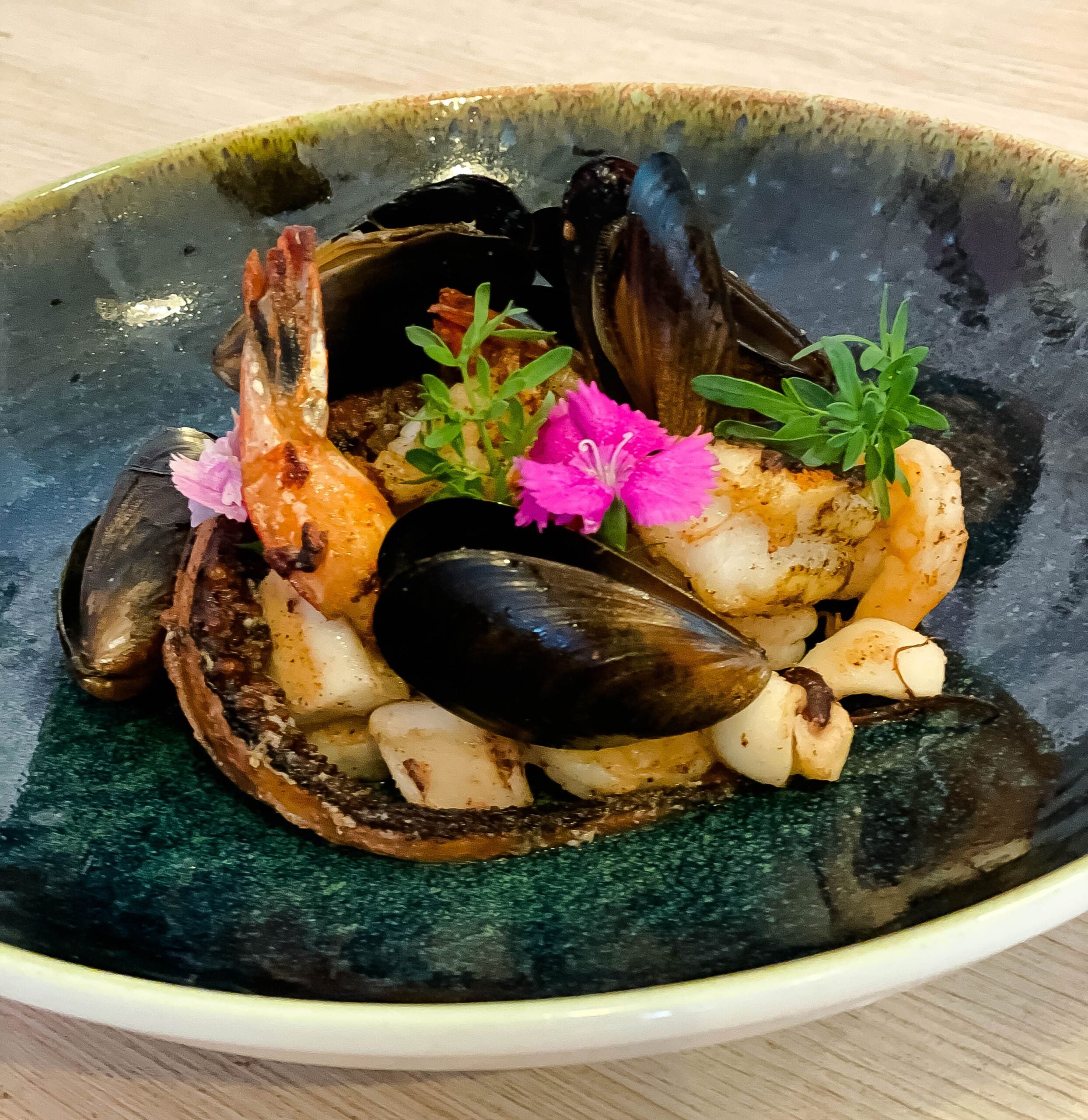 En línea con la exaltación del Chocó, se encuentra la cazuela del pacifico con pulpo, calamar, langostino, camarones y mejillones cubiertos de bisqué de pescado blanco y refrito chocoano.