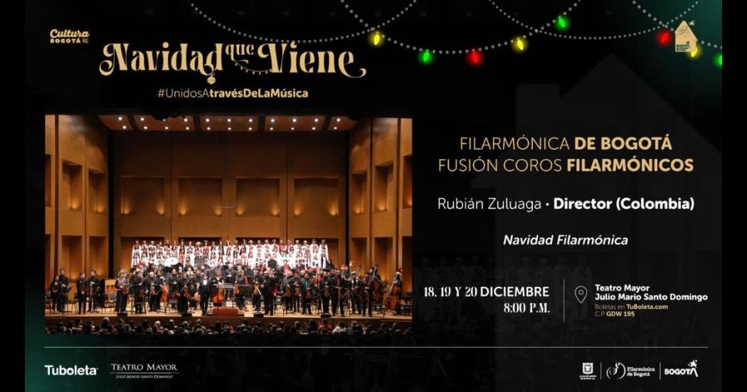 En el Teatro Mayor Julio Mario Santo Domingo, el próximo 20 de diciembre, la Filarmónica de Bogotá tendrá uno de los últimos conciertos del año en Bogotá. ‘Farolito’, ‘Tamborilero’, ‘Navidad tropical’ y ‘Año viejo’ serán algunas de las canciones con las que, junto a los coros filarmónicos, buscarán alimentar el espíritu navideño a partir de las 8:00 p.m.