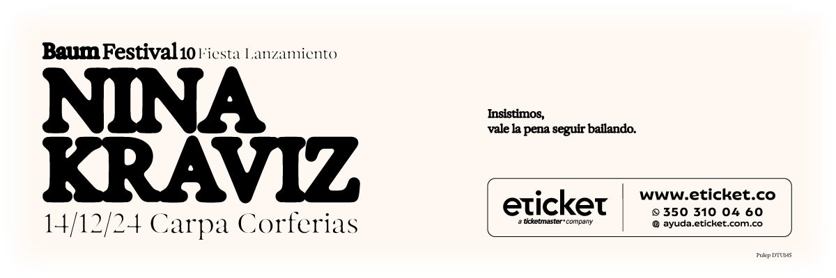 Una de las mujeres que lidera la electrónica mundial, Nina Kraviz, tocará sus ritmos en la Carpa de las Américas, en Corferias, desde las 7:00 p.m. como inicio de su camino hacia el Baum Festival 2025. El concierto iniciará a las 7:00 p.m. Podrá conseguir sus boletas en Eticket desde $91.000 hasta $288.000. Estas últimas están ubicabas en el backstage.