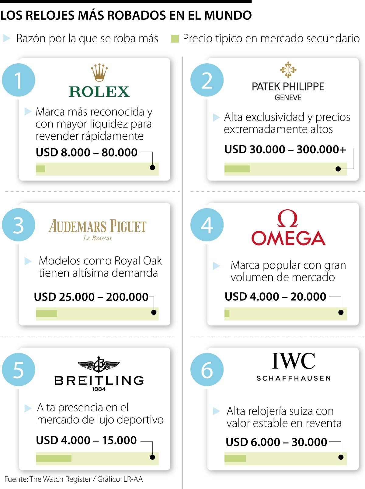 Las cifras provienen de The Watch Register, la mayor base de datos global dedicada a rastrear relojes sustraídos o extraviados, que reúne información de comerciantes, aseguradoras y autoridades de distintos países.