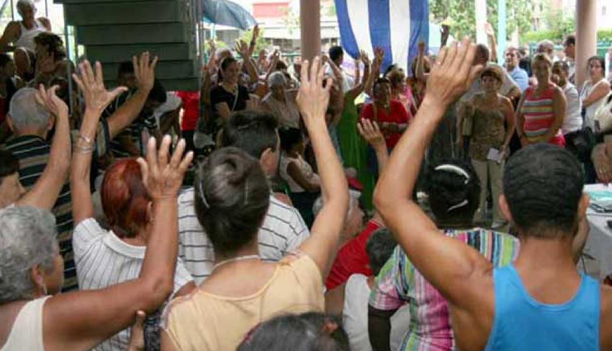 El voto a mano alzada: En las elecciones municipales, los delegados del poder popular (concejales) son elegidos en cada barrio a mano alzada por sus vecinos. Según el Gobierno cubano, este sistema ilustra la representatividad democrática del sistema, pero son contadas las ocasiones en que ha logrado ser elegido un candidato independiente.