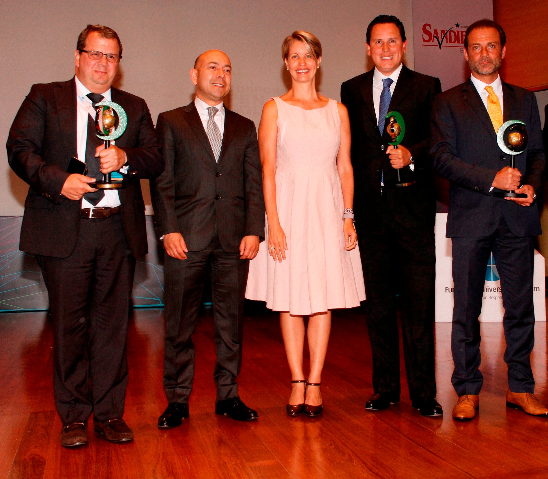 Foto: Carlo d’Imporzano, fundador Gimnasio Alessandro Volta; Eliana Iannini, del Ministerio de Educación; Marco Valera; Patrizia Mascioli, rectora del Volta; y Gonzalo Arboleda, pte. Fundación Colombia Excelente.