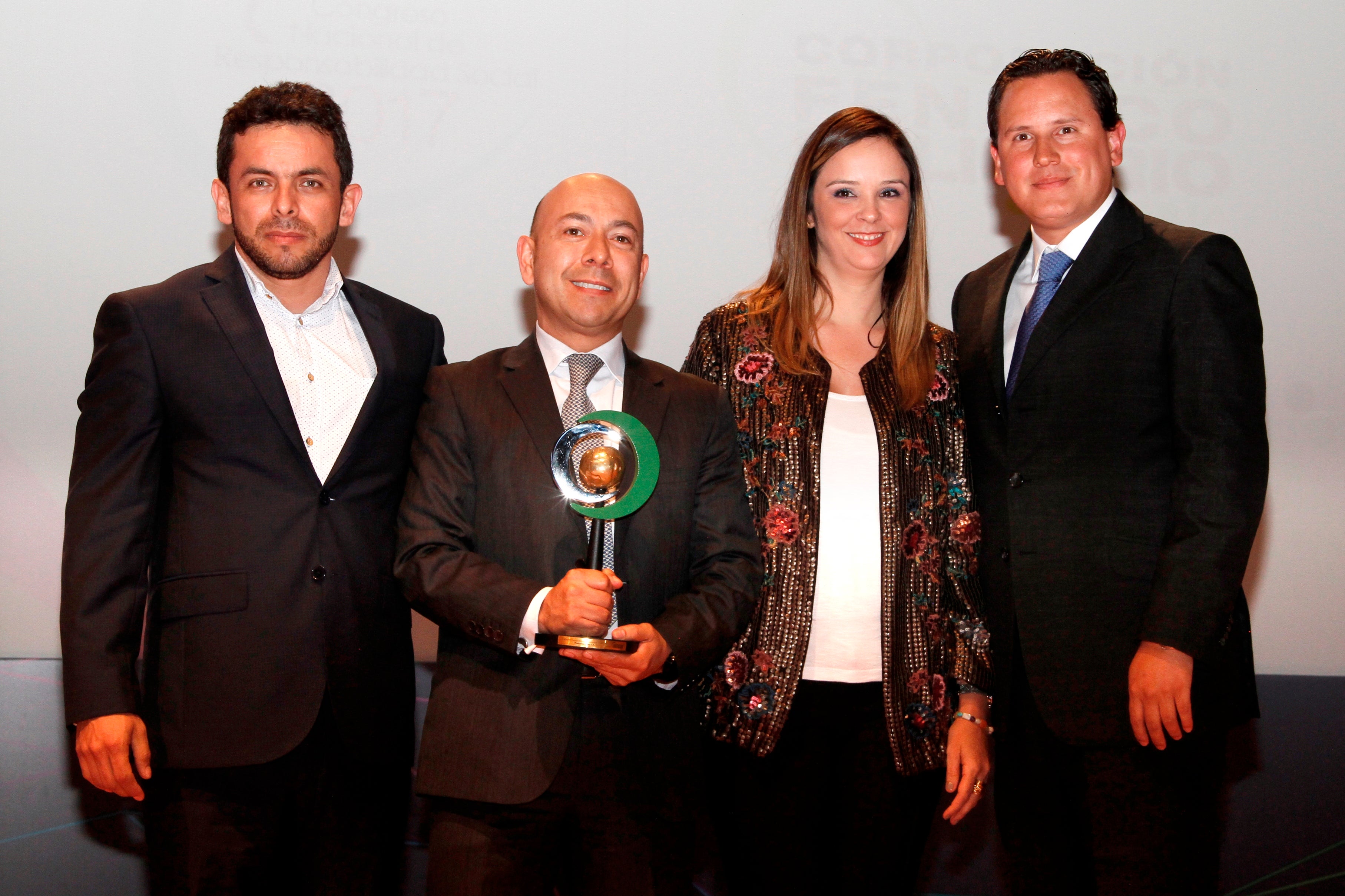 Foto: Gabriel Zapata, presidente de Fenalco Solidario; Gabriel Reyes, presidente de RCN Televisión; Claudia Gurisatti, directora de Noticias RCN; y Elmer Ramírez, vpte. Fenalco Solidario.