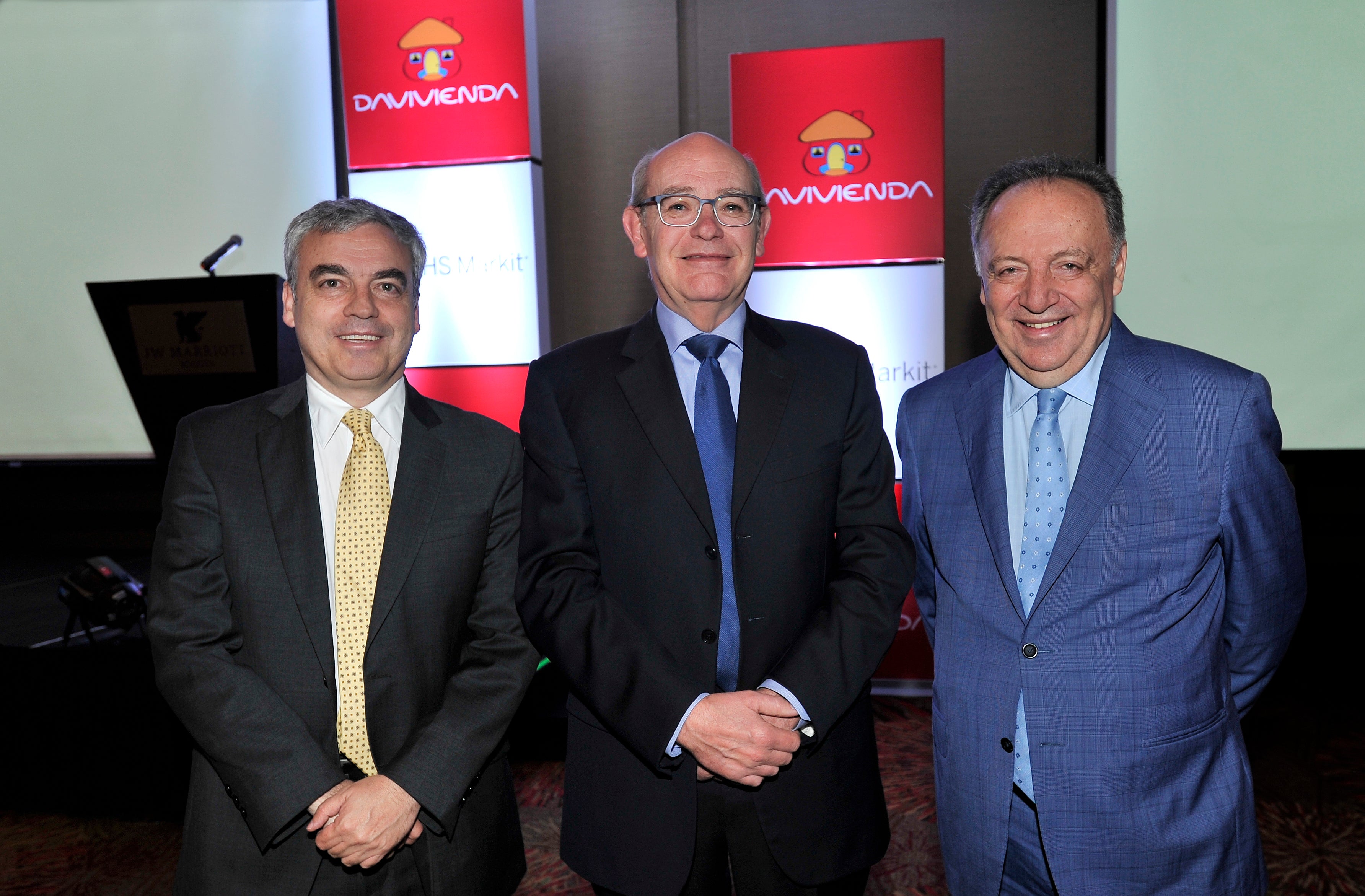 Davivienda lanzó el índice mensual de tendencias económicas. Andrés Langebaek, director de estudios del Grupo Bolívar; Richard Willis, director de IHS Markit y Efraín Forero, presidente de Davivienda.