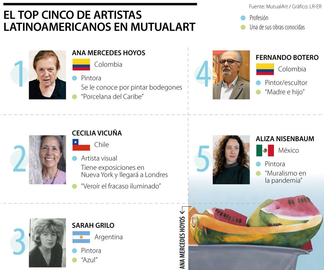 El arte colombiano crece de la mano de grandes exponentes y es reconocido por plataformas como Mutual Art, en la que se realizan subastas, asesorías y críticas de arte. Su último ranking, de artistas destacados en Latinoamérica, por ejemplo, incluye a dos locales.