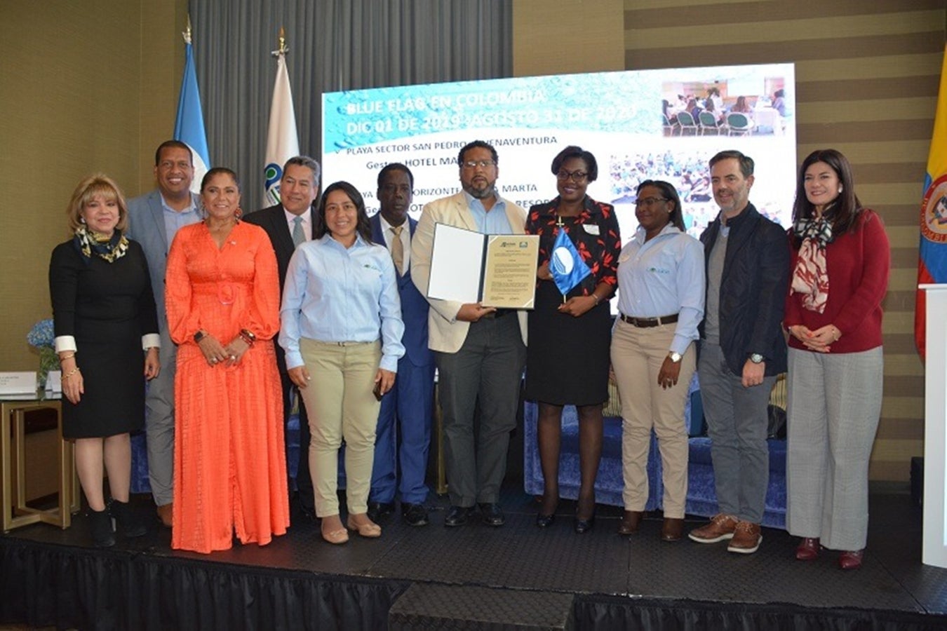 Maryluz Mejía de Pumarejo, presidente ejecutiva de Acodal; Durcey Stephens Lever, director general de Coralina; Erick Castro, subdirector de Mares y Costas; Elizabeth Jay-Pang Díaz, representante a la Cámara por el Departamento de San Andrés, Providencia y Santa Catalina; Tonney Gene Salazar, gobernadora de San Andrés, Providencia y Santa Catalina; representantes de la comunidad; Julián Guerrero Orozco, viceministro de Turismo; y Raquel Garavito, presidente de Fontur.