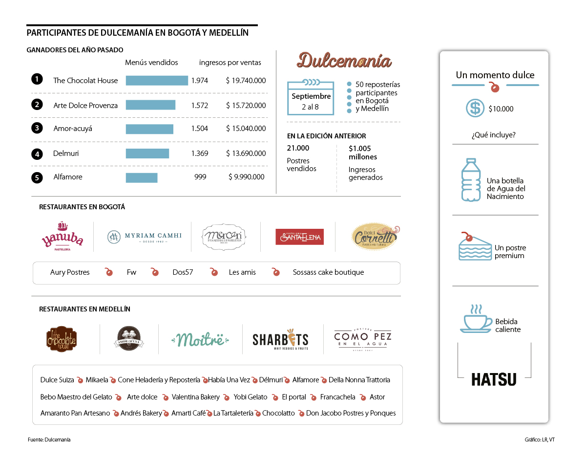 Para la edición de este año, País Gourmet, junto con sus aliados principales (Compañía Nacional de Chocolates, Hatsu y Nacimiento), lograron abarcar también a Bogotá, por lo que el evento se realizará en paralelo en la dos ciudades, que suman hasta el momento 50 reposterías inscritas y en las que se espera comercializar 50.o00 platos.