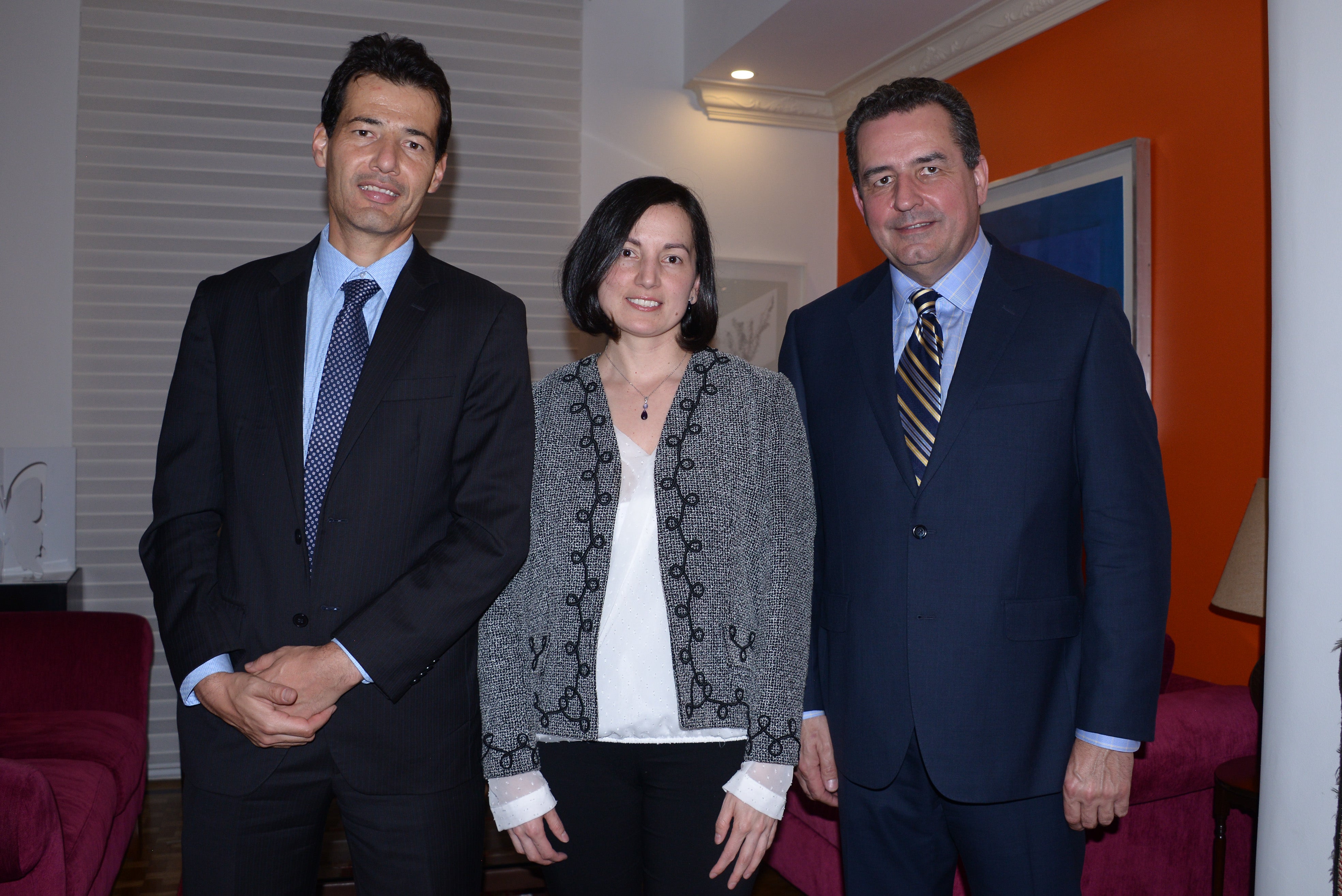 Santiago Osorio, Andrea Silva y James Valdiri, socio en Dentons Cardenas & Cardenas, estuvieron entre los asistentes al coctel.