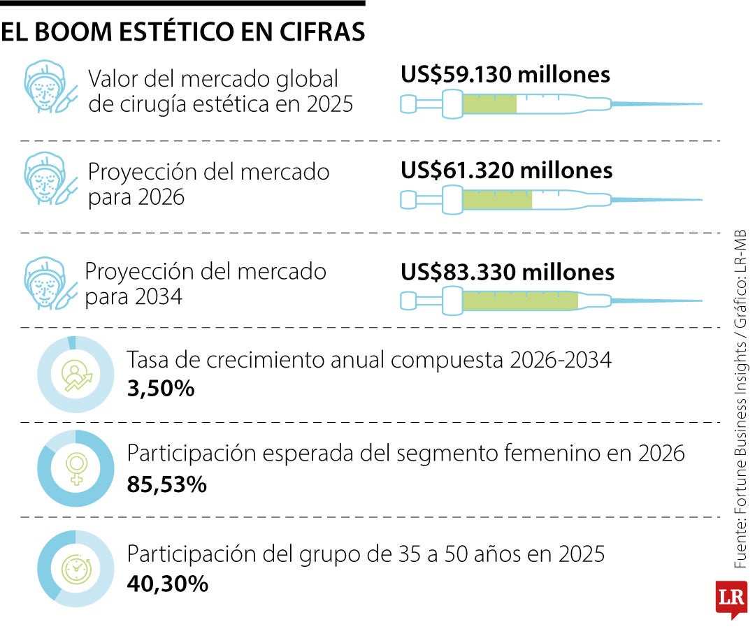 Pómulos marcados, piel perfecta y nariz pequeña jalonan un mercado que fue valorado en us$59.130 millones en 2025. pasó de ser una tendencia a estándar visual