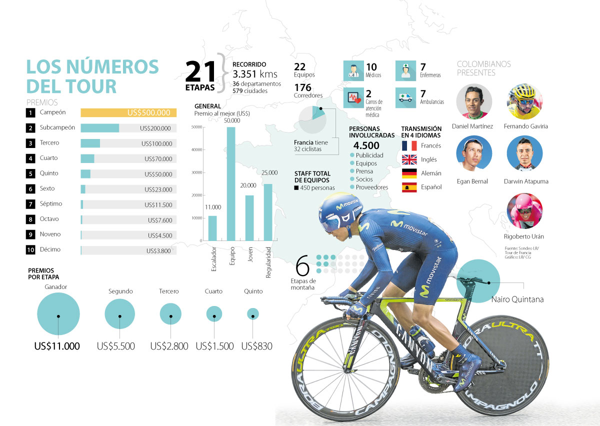 Se trata de una diferencia considerable, a pesar de que el formato de entrega de dinero a raíz de victorias en etapas y los otros factores ayuda a que los pedalistas del Tour ganen más dinero, además, de acuerdo con el excliclista, Santiago Botero, “el monto de los premios es inferior al de otros deportes porque en el ciclismo hay salarios fijos”.