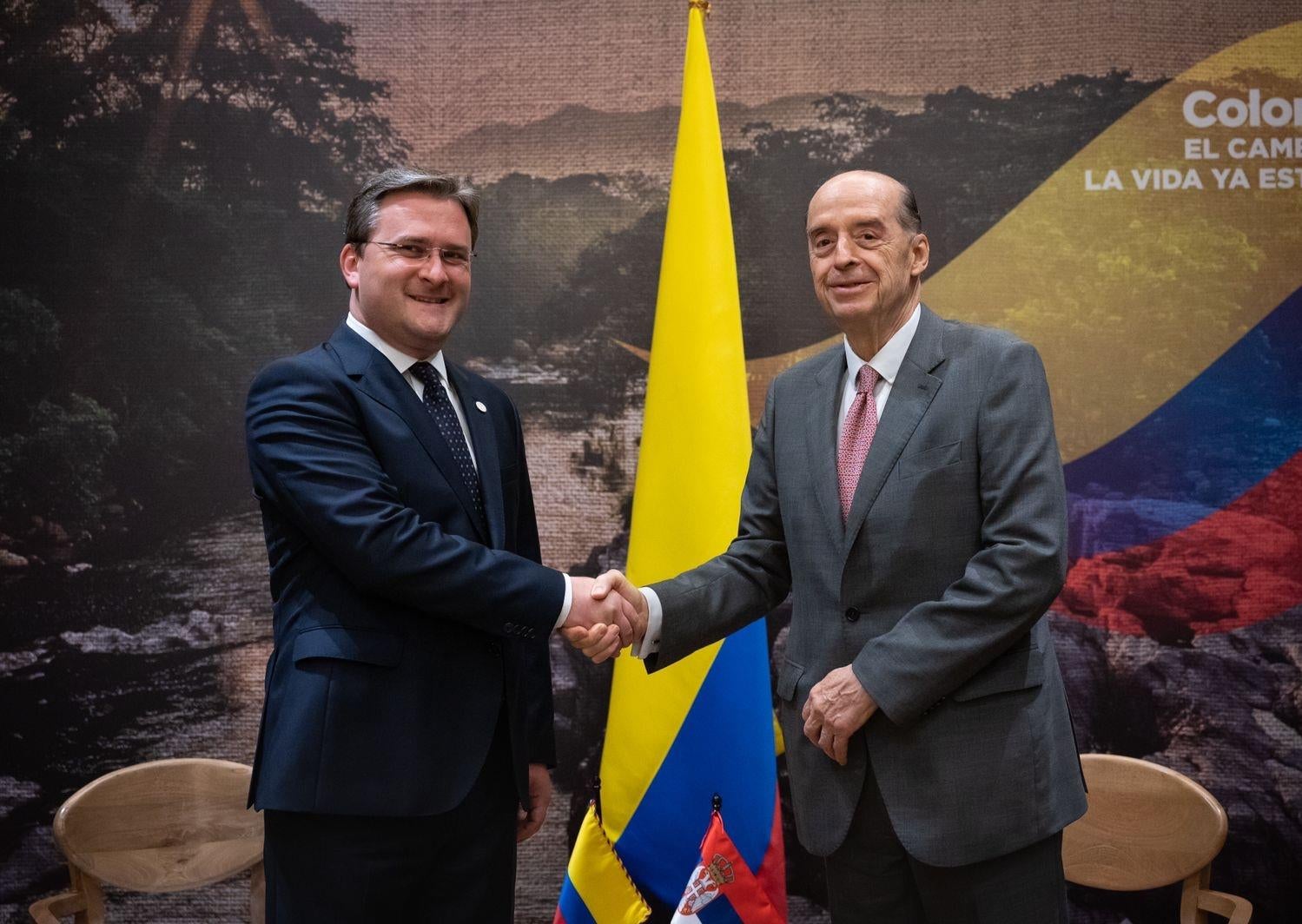 El Ministro de Relaciones Exteriores de Serbia Nikola Selaković y Álvaro Leyva.