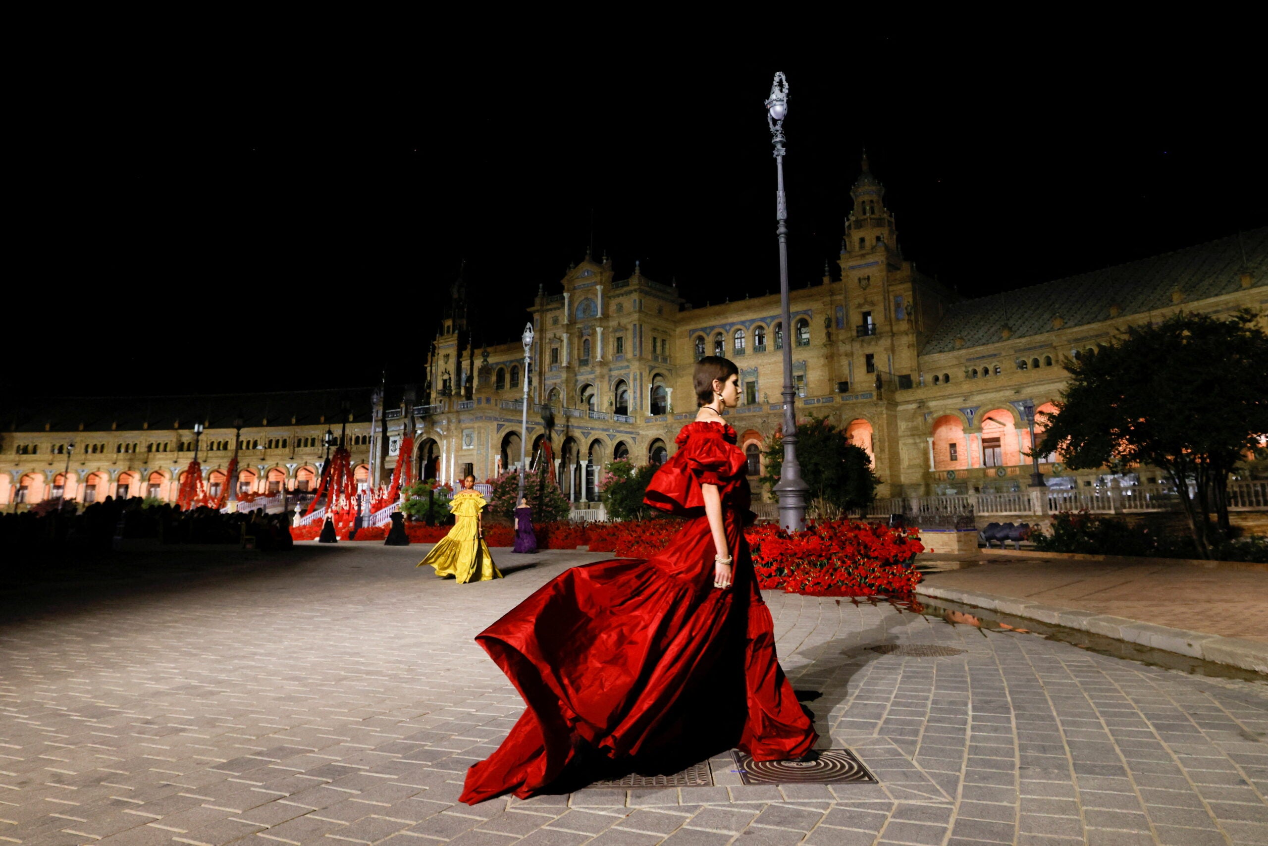 El evento en la histórica Plaza de España de la ciudad mostró la nueva colección "Crucero 2023" de la marca francesa, incluyendo "looks" que evocaban a la Duquesa de Alba, la aristócrata con más títulos del mundo y un icono de la moda flamenca durante décadas en la Feria de Abril de Sevilla hasta su muerte en 2014.