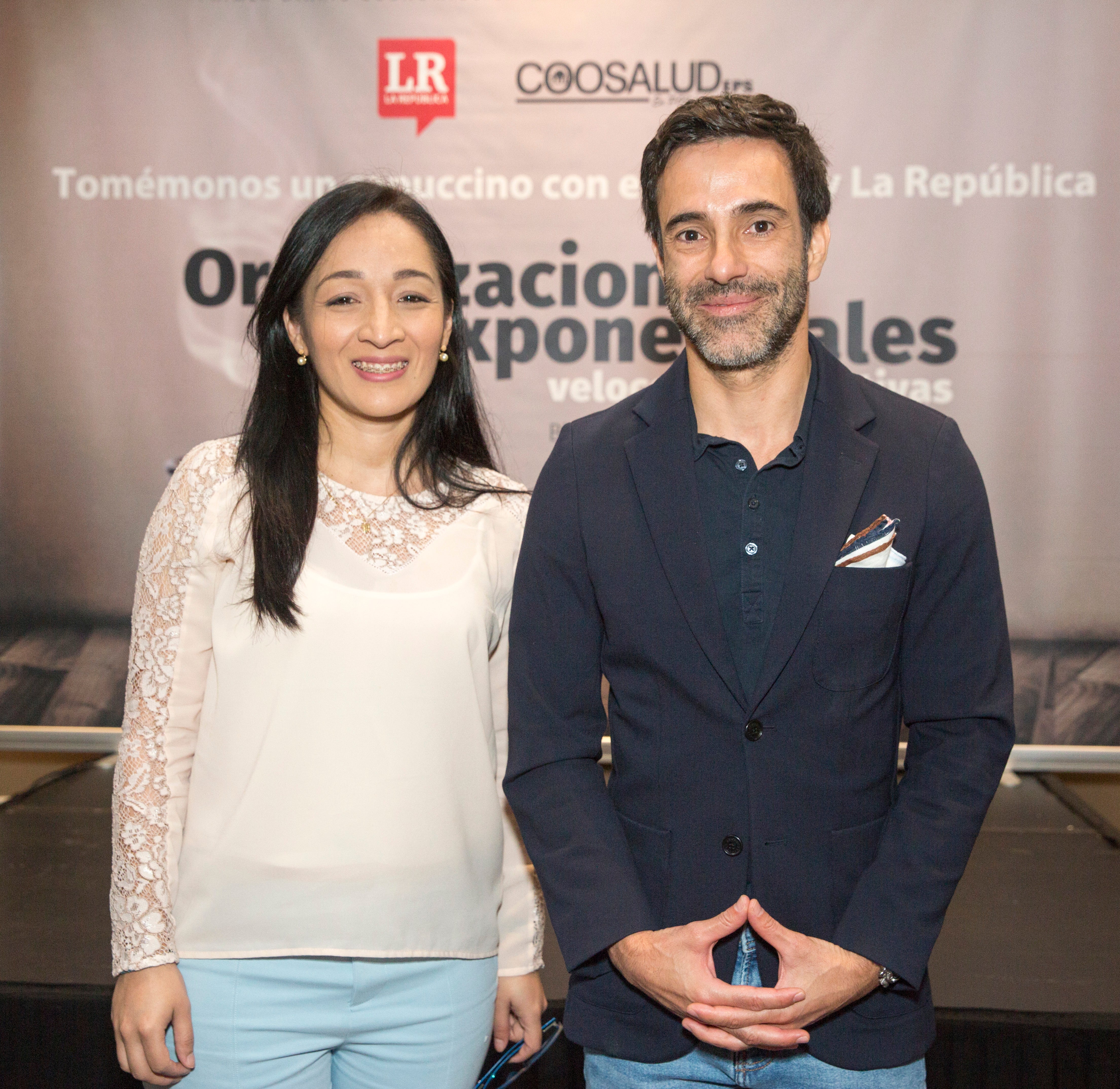 Paula Castaño, jefe de planeación y desarrollo organizacional Comfenalco Antioquia, y Lucas Posada, gerente regional Medellín Finsocial.