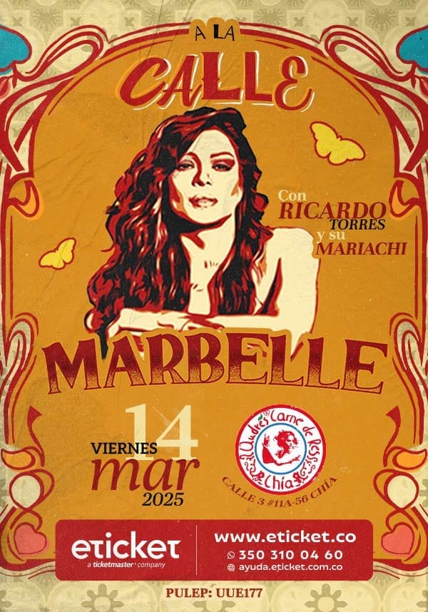 A La Calle en Andrés Carne de Res presenta el próximo 14 de marzo a la reconocida intérprete, Marbelle, quien con su potente voz y carisma en el escenario hará vibrar a los comensales con lo mejor de la música popular, pop y tecnocarrilera. No se pierda de un espectáculo único, cante sus grandes éxitos y viva la experiencia junto a la cantante colombiana.