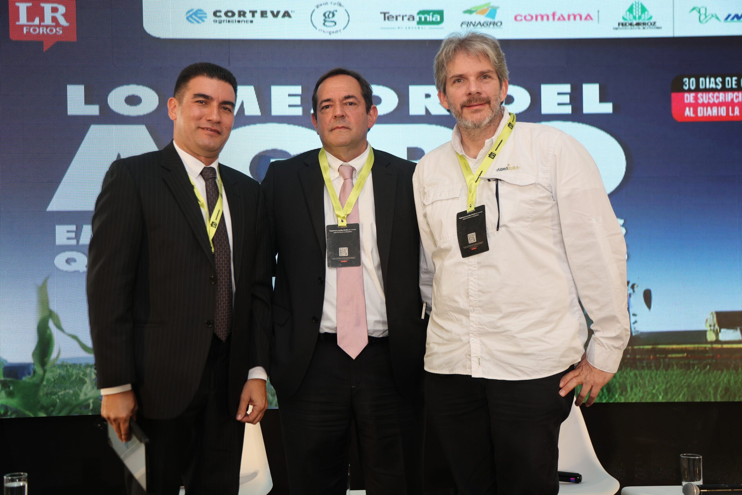 Julio César Acevedo, gte. Terramia by Levapan; Carlos Rebolledo, de Corteva Agriscience; y Boris Wüllner, CEO de Green Coffee Company.
