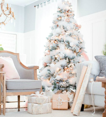 Como en Colombia no tenemos nieve, ni pinos reales para decorar, se recomienda adquirir un árbol navideño tipo nieve, o el spray para pintarlo, esto va perfecto con los tonos característicos de la navidad polar.