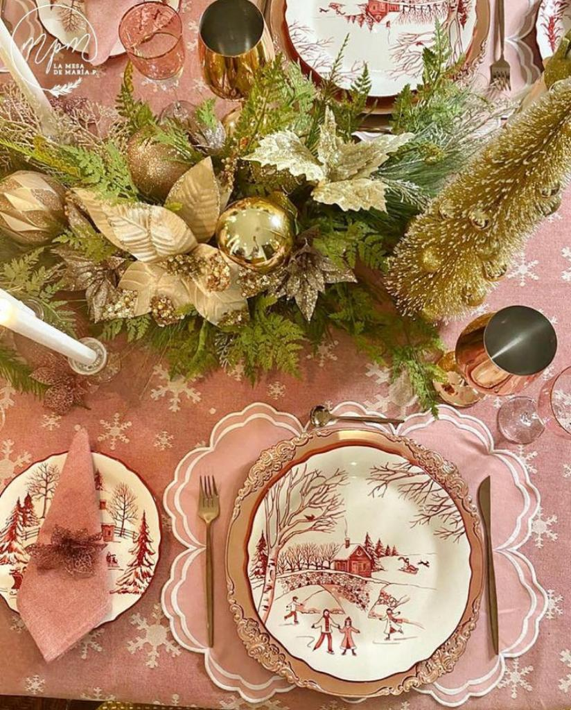 Para María Paola Mejía, experta en decoración de mesas, esta temporada es para arriesgar y ser creativos, por eso la tendencia que se está viendo, según la experta, es usar paletas de colores distintas que incluyan el oro y el rosado. Platos tallados y copas metalizadas adornarán la mesa en 2020.