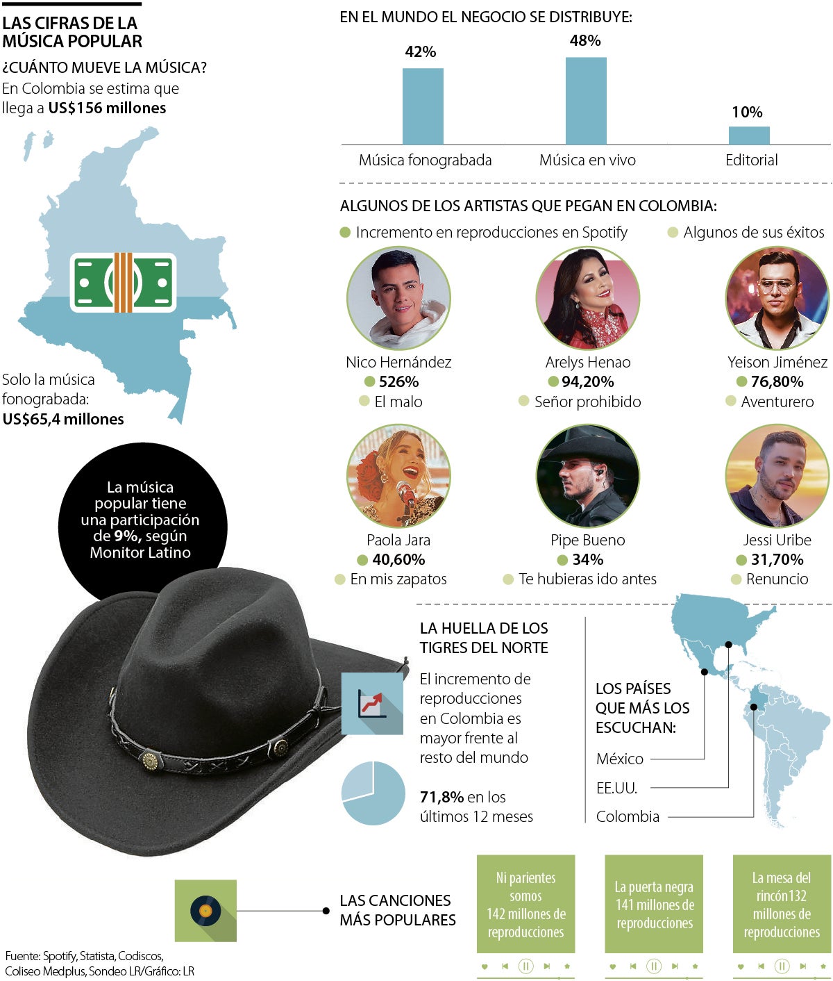 Ferias, festivales, conciertos taquilleros, emisoras propias del género y muchas, muchas playlists, es lo que ha logrado la música popular, no solo en Colombia, sino en todo el mundo. El terreno lo ha ganado a pulso con sus artistas que en el país presentan incrementos en sus reproducciones de hasta 500% en el último año, según cifras de Spotify.