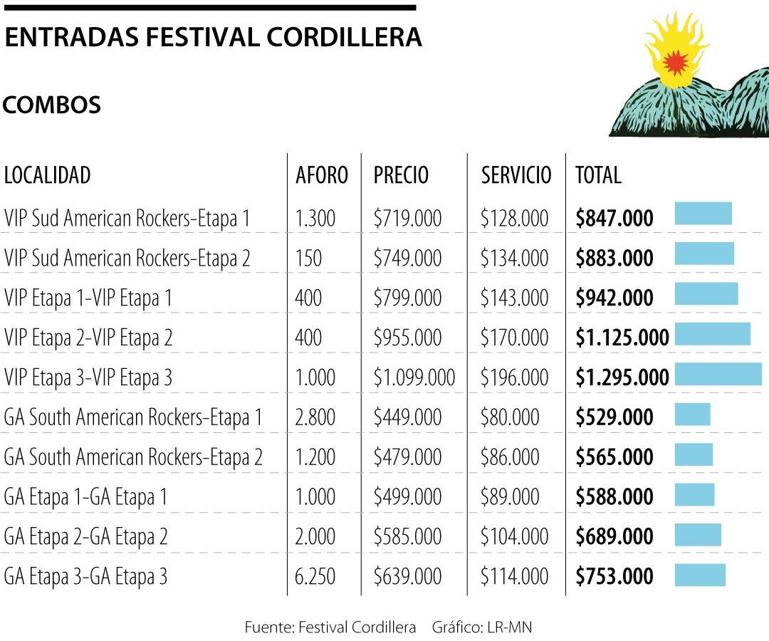 Los precios de las entradas para categoría vip van desde los $799.000, más servicio en etapa uno, hasta los $1,09 millones más servicio en etapa tres. Y para categoría general, van desde $499.000 + servicio para la etapa 1 hasta los $639.000 + servicio en etapa 3.