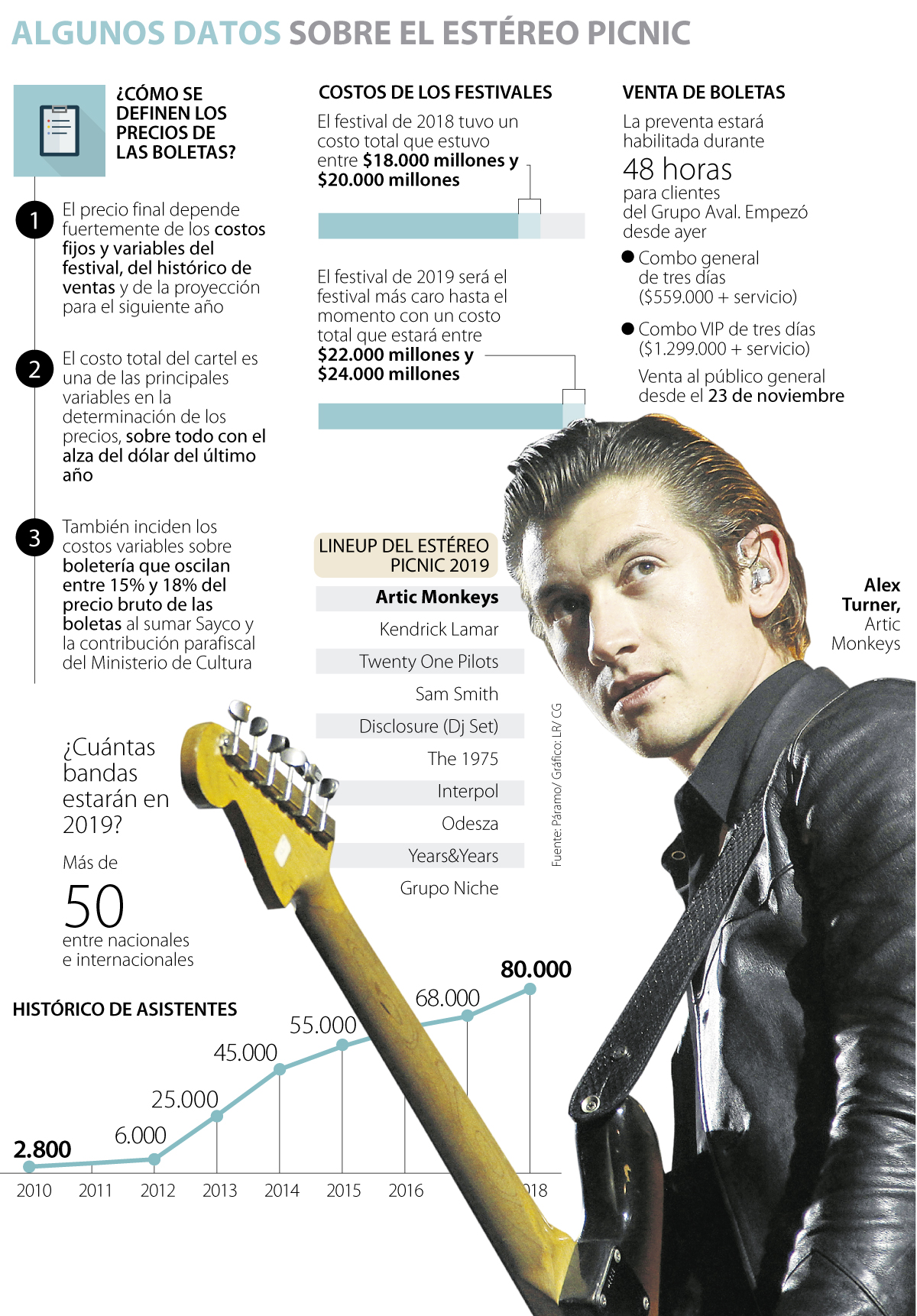 Un combo de tres días para Lollapalooza Chile cuesta cerca de $714.000. El paquete de tres días para Lollapalooza Argentina está en $574.000, mientras que el precio de Estéreo Picnic de tres días con el anuncio del cartel es de $559.000. “Hay que tener en cuenta que todos los mercados son diferentes y siempre se busca lograr el mejor precio para los asistentes. En Colombia tenemos un mercado que es de menor tamaño y tenemos unos costos variables que no son tan favorables y terminan encareciendo las boletas para el comprador final”, dijo Silva.