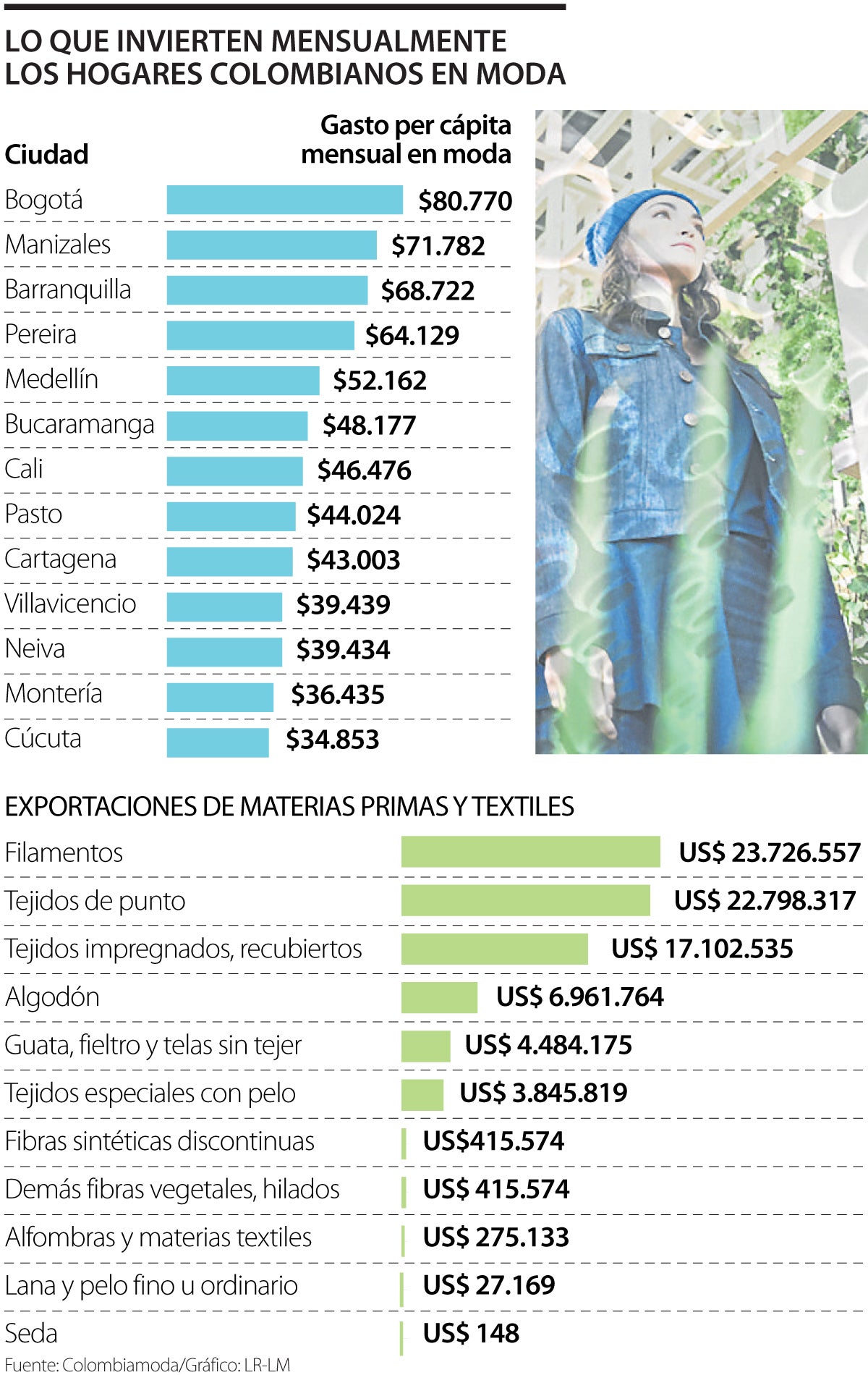 La ciudades donde las personas invirtieron mensualmente más en moda fueron: Bogotá con $80.770, Manizales con $71.782 y Barranquilla con $68.722.