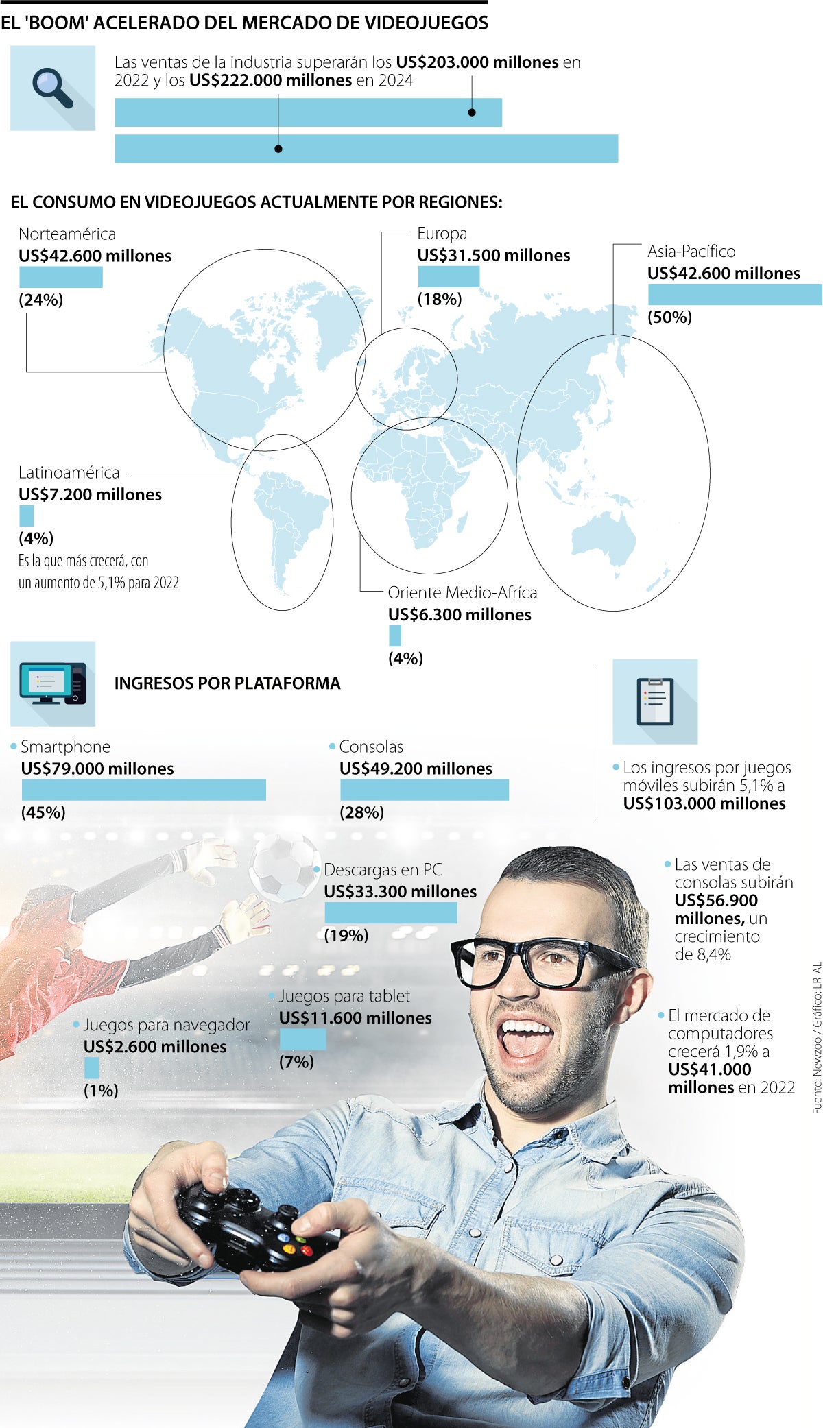 Como cada vez es mayor la cantidad de personas que juegan, también lo son las cifras del sector, que a nivel mundial superará los US$203.000 millones en 2022, de acuerdo a un estudio de Newzoo.
