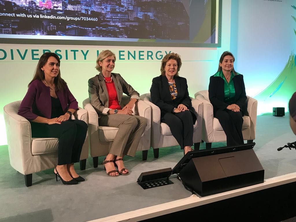 María Victoria Zingoni, executive Managing Director of Downstream, de Repsol; Marta Margarit, Secretary General, de Sedigas; Eithne Treanor, Managing Director, E Treanor Media; y Astrid Álvarez, CEO del GEB.